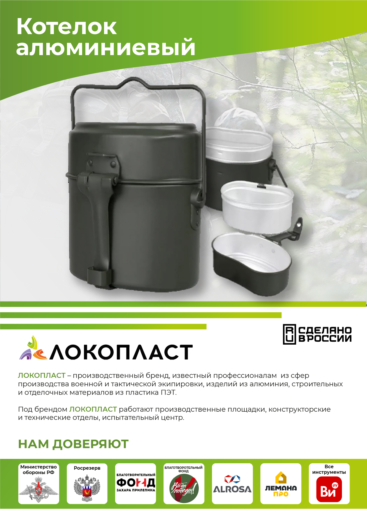 в котелок, сверху закрывается крышкой - сковородником, при этом ручка защелкивается на корпусе котелка, за счет специального выступа