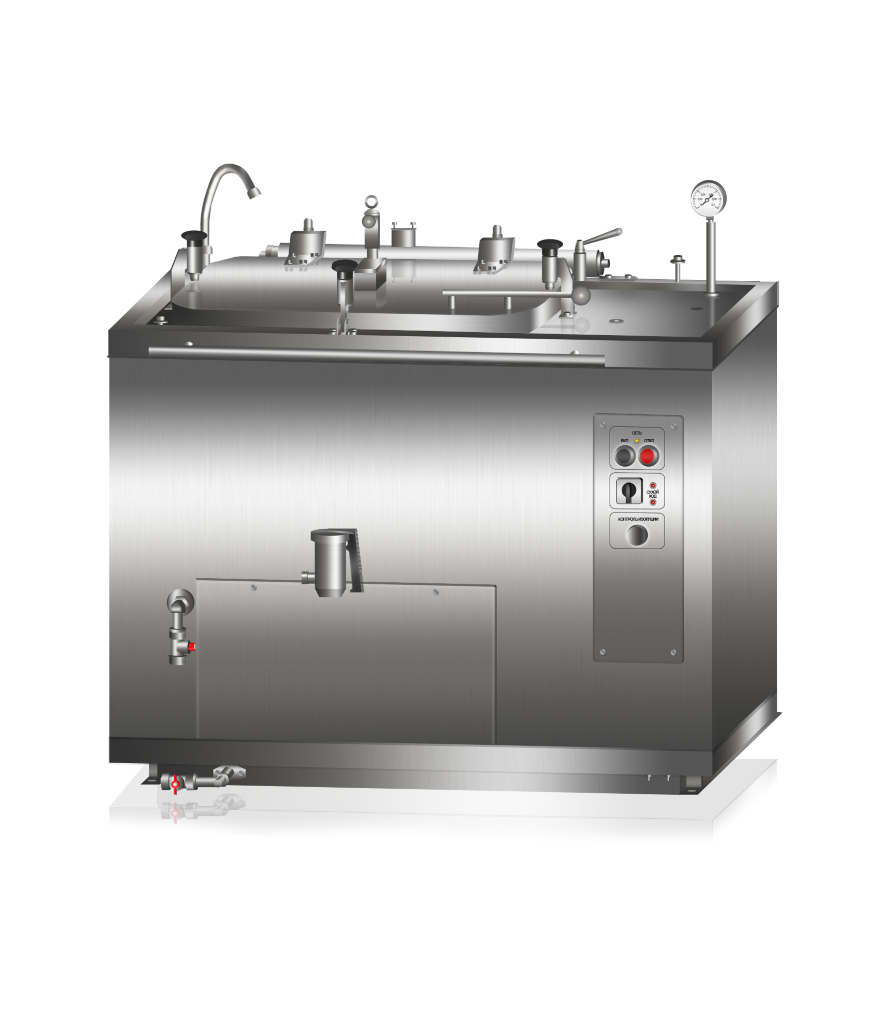 - Сливной кран для приготовленной продукции диаметром G11/2 (≈48 мм).