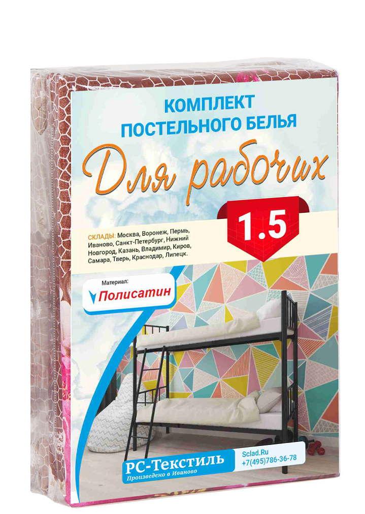 КПБ, Полисатин, 1.5 спальный (наволочка 70)