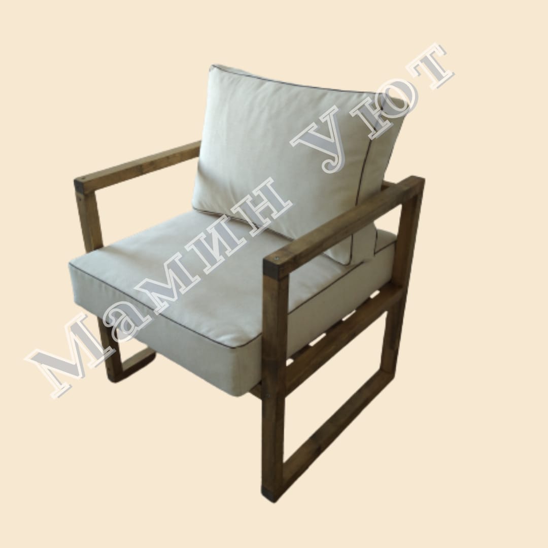 Кресло Лофт KL1. Каркас кресла выполнен из бруса лиственницы ( возможен выбор: дуб, ясень или бук -цены рассчитываются индивидуально). Размеры: ширина 70 cм.,глубина 70 см., высота от пола до сидушки 35 см., от пола до спинки-70 см.