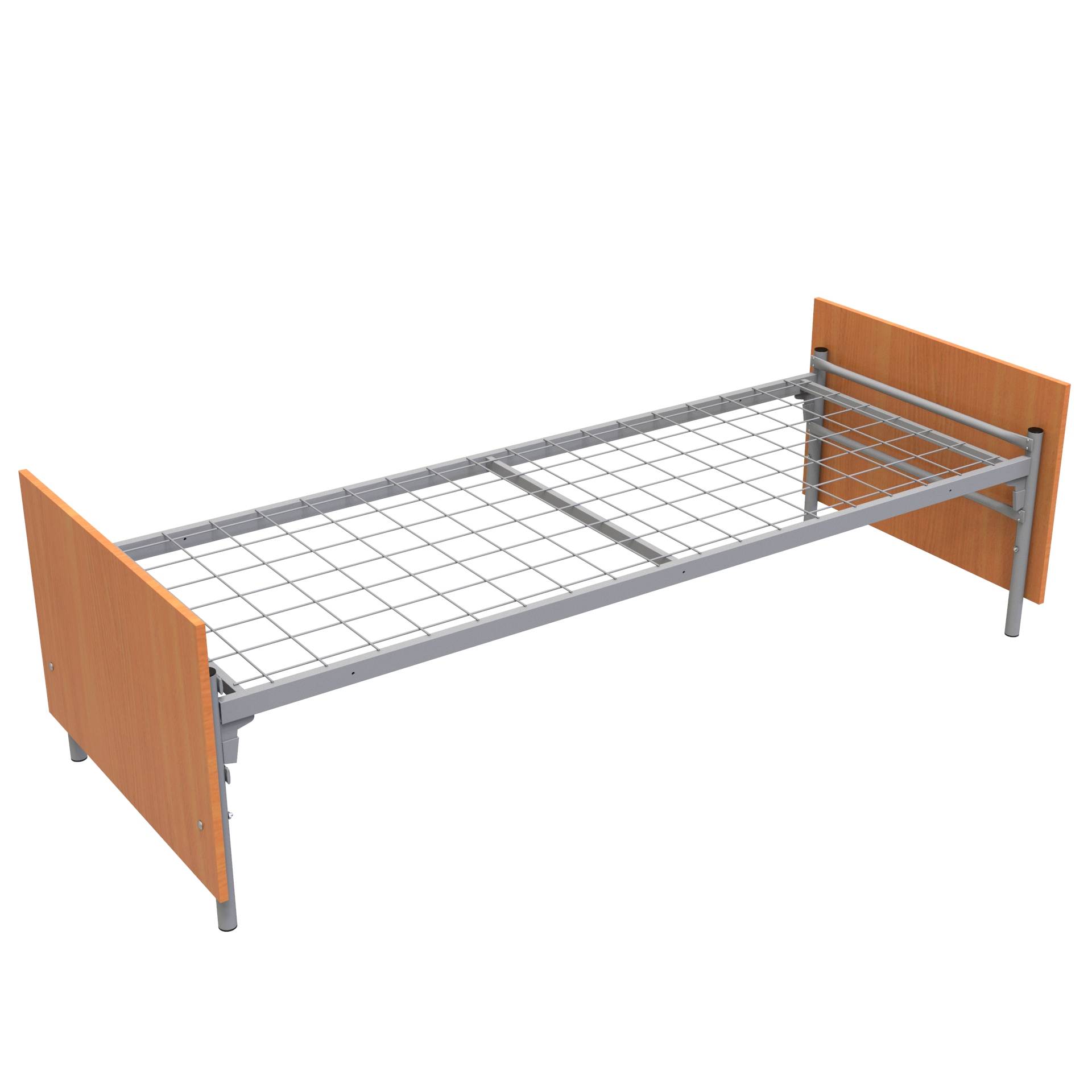В данной одноярусной кровати на металлическом каркасе в качестве спинок используются панели из ЛДСП цвета бук Бавария