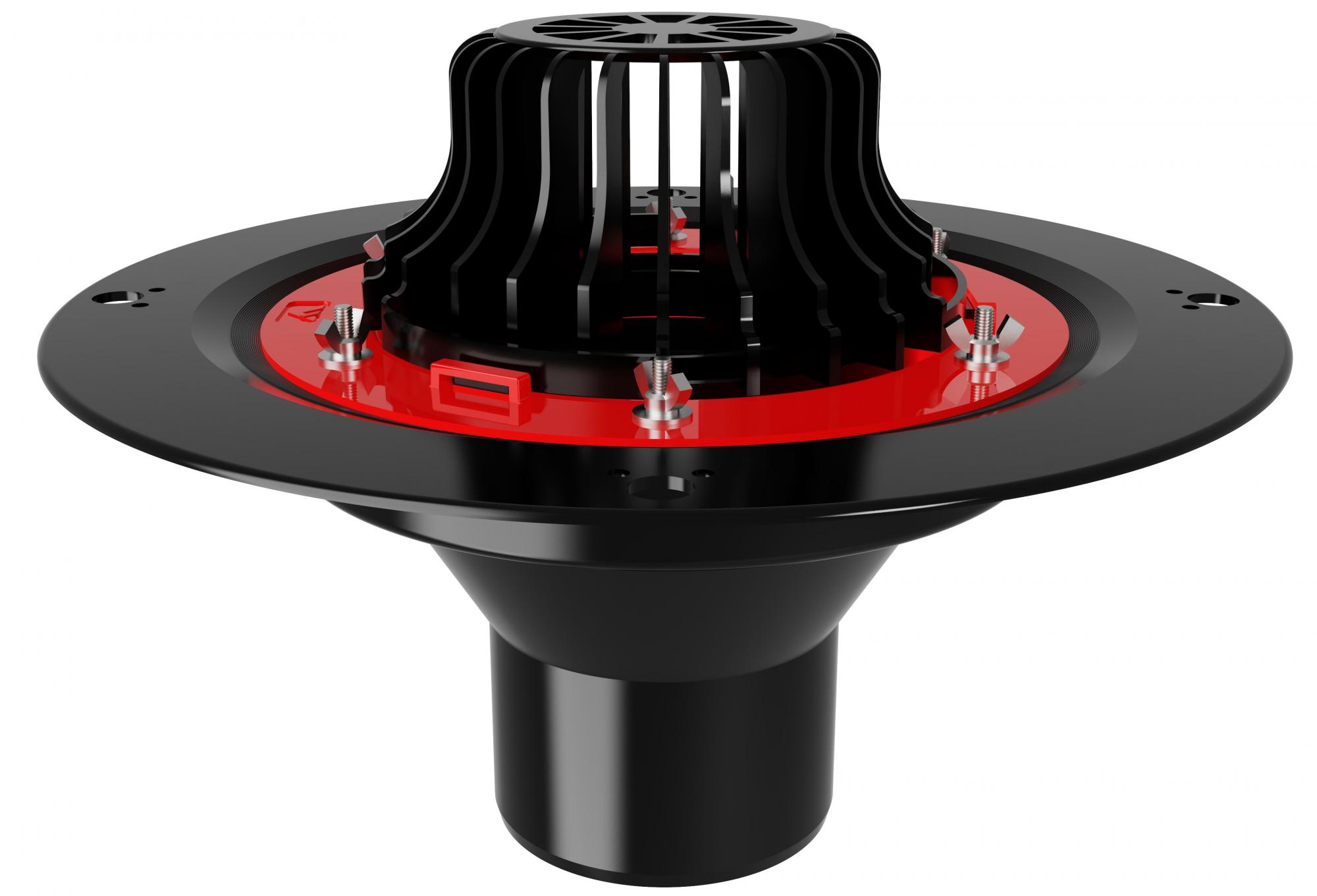 Листвоуловитель 2 в 1 не позволяет воронке засоряться даже в ветренную погоду, а при повороте на 180° этот элемент служит дренажным кольцом для надставных элементов. Благодаря коррозионностойкому металлическому прижимному фланцу воронка выдерживает большие нагрузки.
