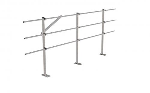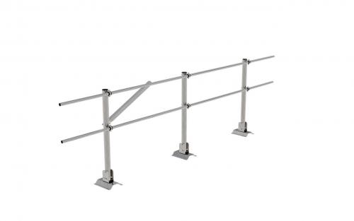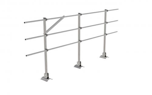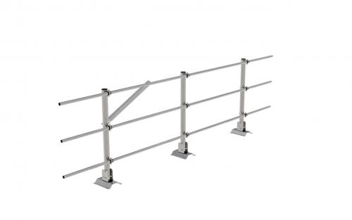 Кровельное ограждение Fachmann предназначено для обеспечения безопасности людей во время эксплуатационных работ на плоской кровле. Ограждение устанавливается в железобетонную плиту, цементно-песчаную стяжку или антисептированный брус.