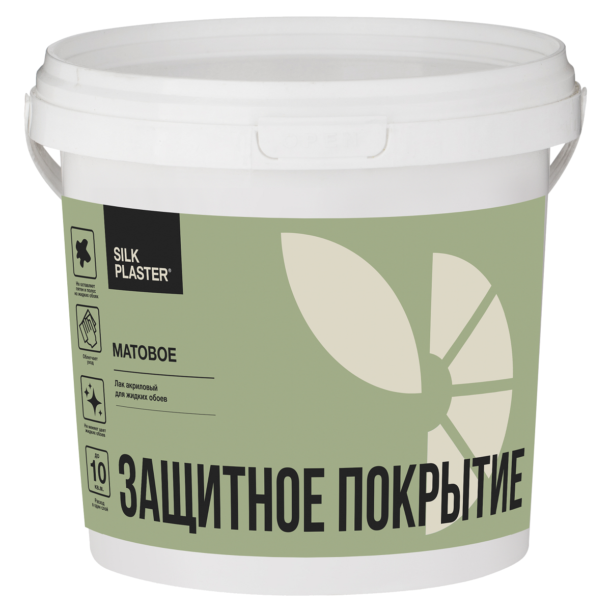 Фирменный лак SILK PLASTER - финишное покрытие (акриловое, прозрачное), которое придает жидким обоям дополнительные преимущества: