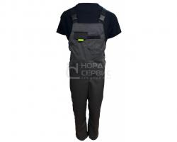 Костюм рабочий мужской включает куртку и полукомбинезон. Может быть укомплектован рабочими брюками.