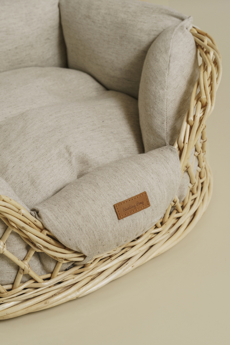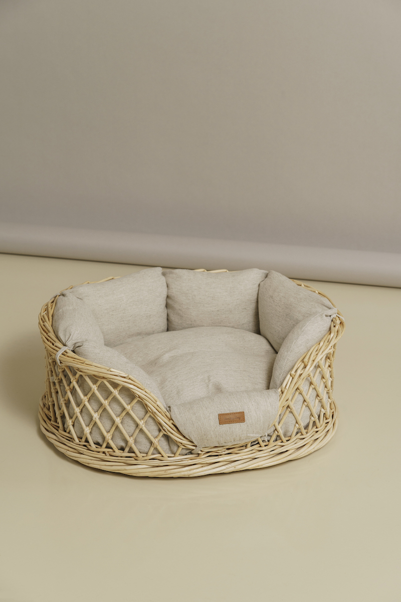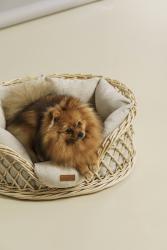 В этой лежаночке точно не будет жарко: подушечка сделана из натурального льна, очень приятного на ощупь. А сама кроватка выполнена из лозы, она круто впишется в интерьеры, где используются натуральные материалы.
