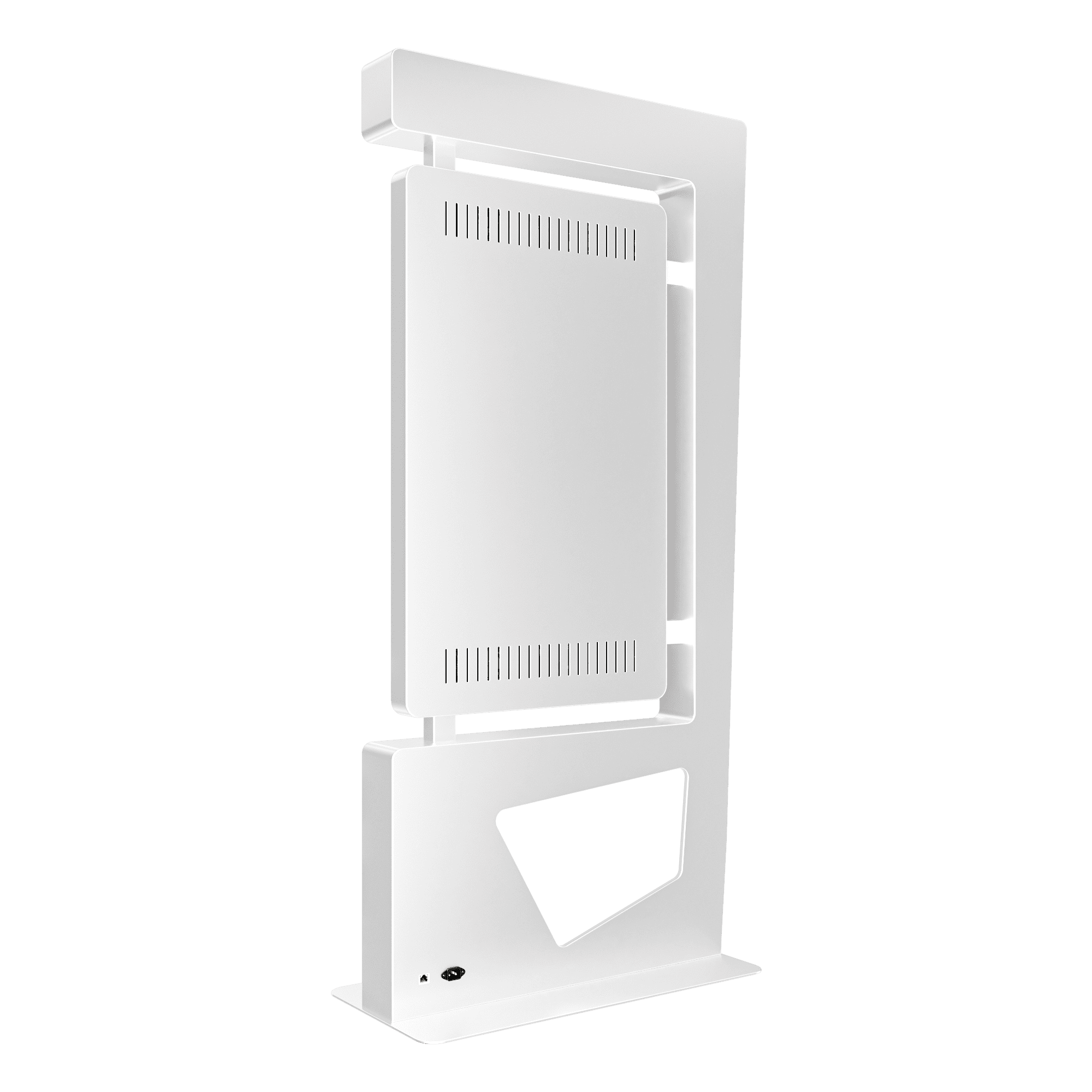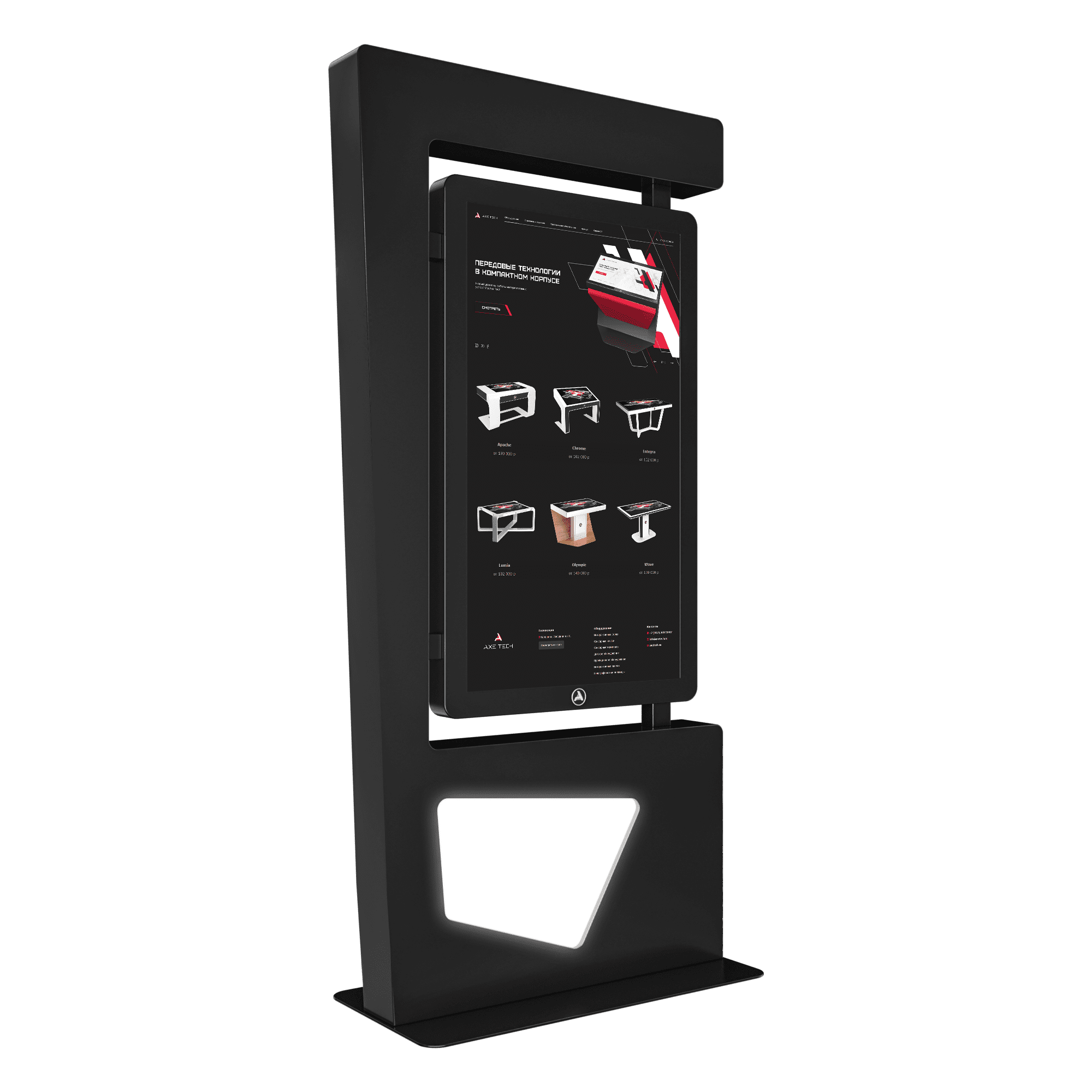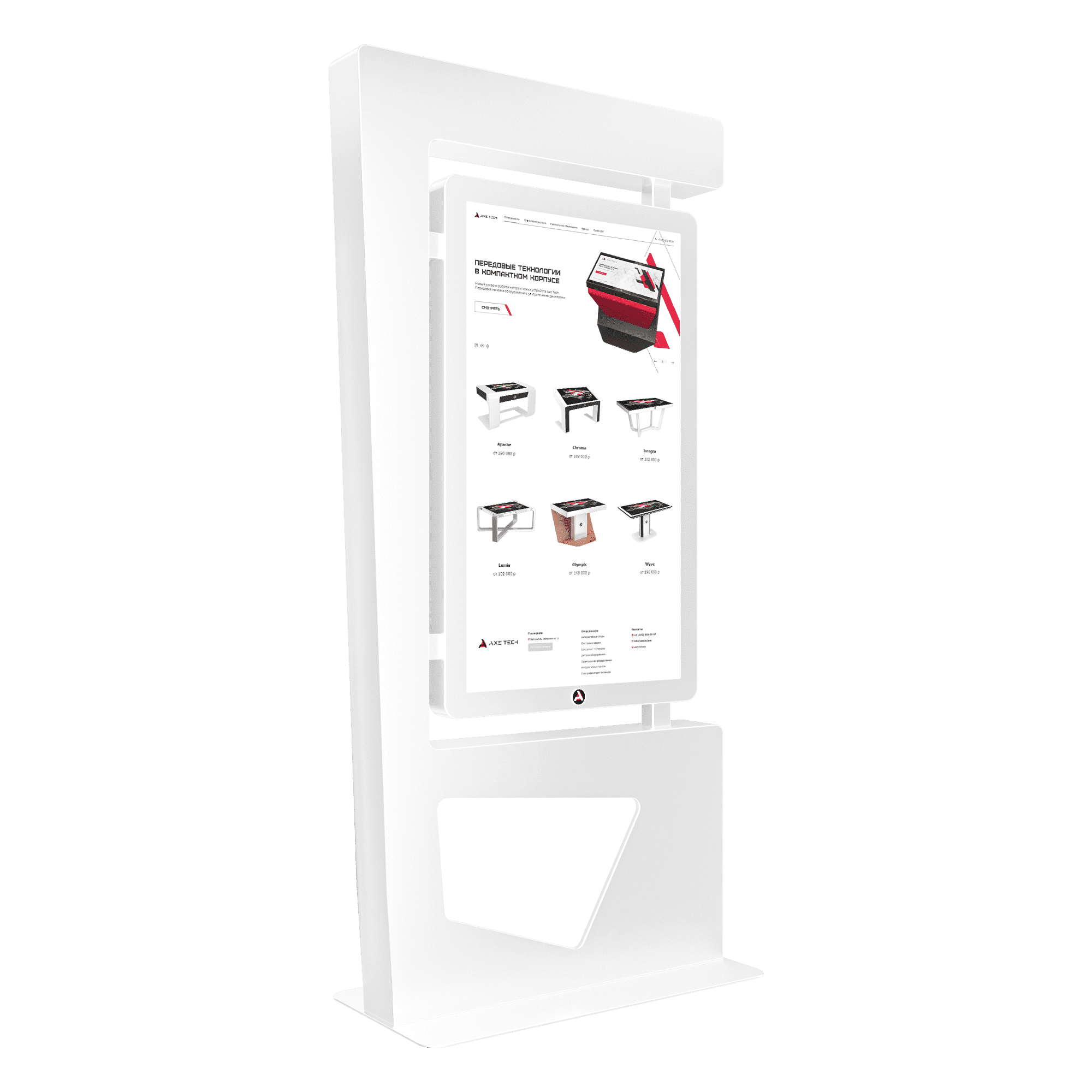 Благодаря своему яркому и утонченному дизайну, где сенсорный экран, поддерживающий до 20 одновременных касаний, будто парит в невесомости, а нижняя часть корпуса украшена геометрической фигурой, сенсорный киоск станет настоящим украшением и привлечет внимание каждого пользователя.