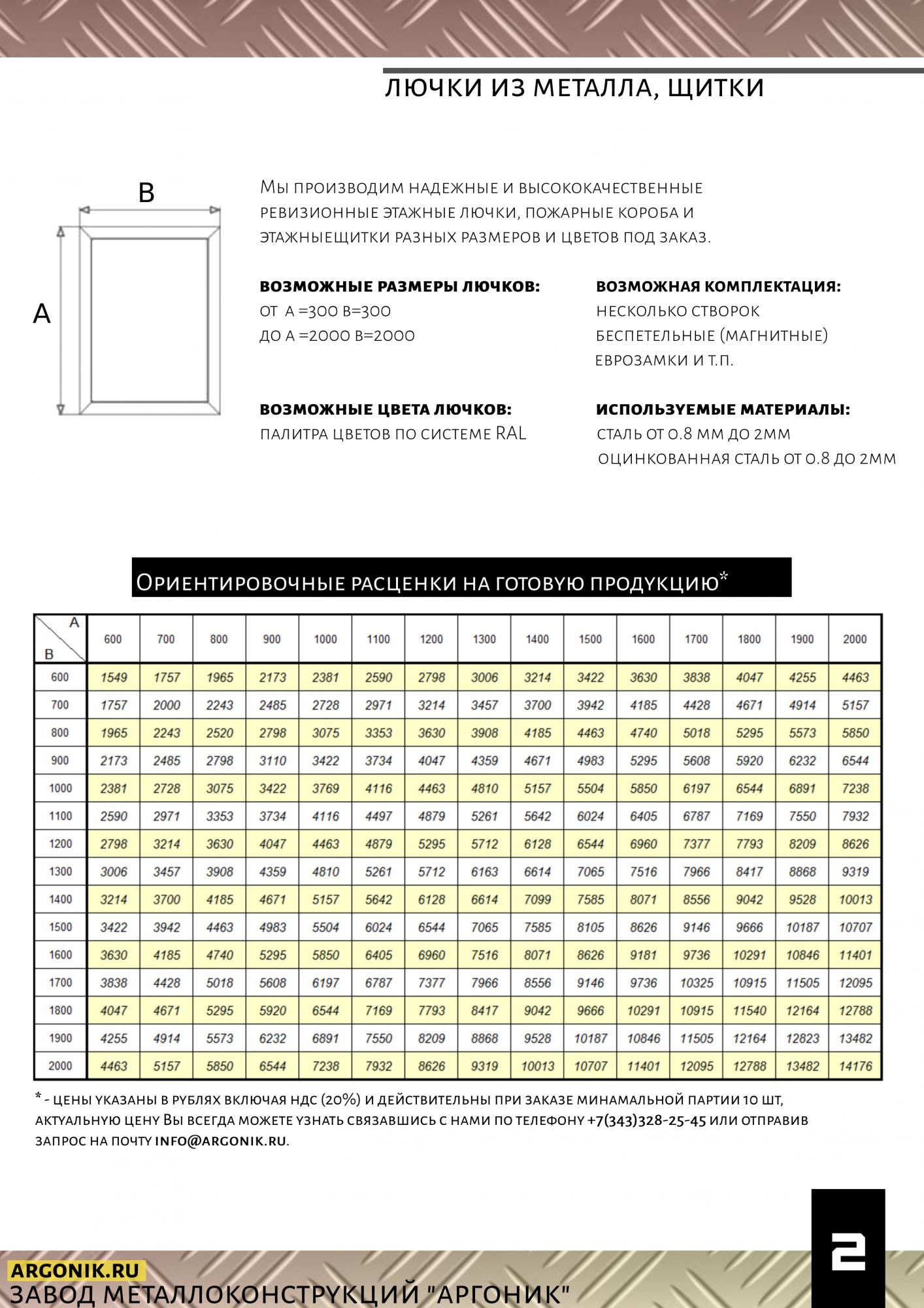 Ревизионные лючки размерами от 300х300 до 2000х2000