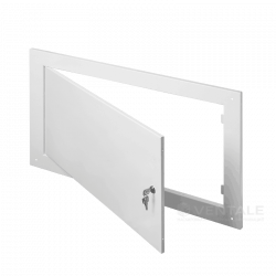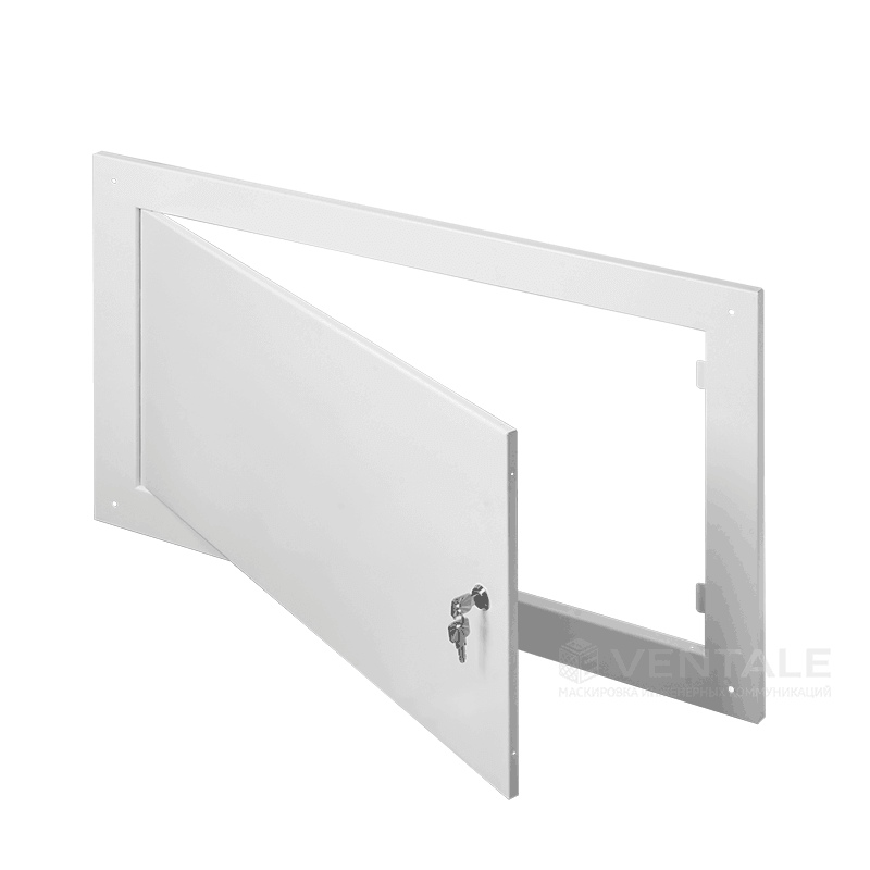 Люк сантехнический ревизионный металлический накладной с замком Ventale из стали 0,8 мм. Особенности модели: замковая модель ревизионного сантехнического люка с накладным типом монтажа, дверка фиксируется за счет цилиндрового (почтового) замка, отсутствует монтажный борт (фланец). Для чего: используется в местах общего пользования с предустановленными выпирающими инженерными коммуникациями, которые необходимо эстетично скрыть, но при этом ограничить доступ. Обеспечивает легкий и удобный доступ для регулярной ревизии коммуникаций. Из чего: изготавливается из холоднокатанной стали методом раскроя на станке лазерной резки, детали гнутся на листогибочном прессе с ЧПУ, собирается контактной или полуавтоматической сваркой, с последующей полимерной порошковой покраской.
