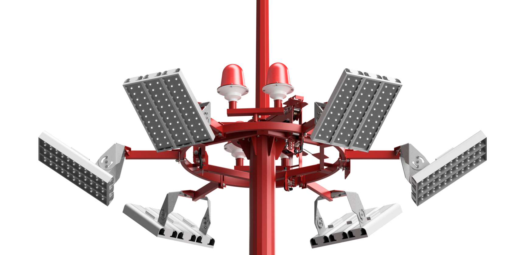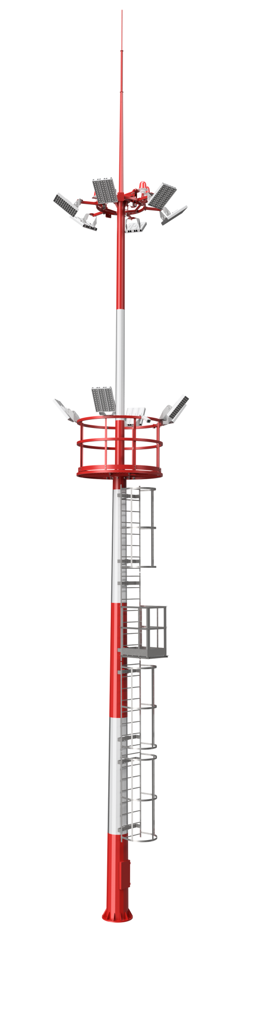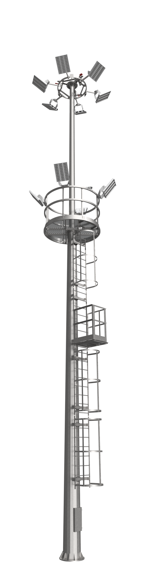 Высокомачтовые опоры освещения МГФ-СР для масштабных территорий с возможностью сервисного обслуживания осветительных приборов c площадки мачты.