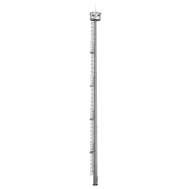 Высокомачтовые опоры ВМОН представляют собой граненые фланцевые конструкции со стационарной короной для организации освещения территорий. Высота опор составляет от 16 до 40 метров с конической формой ствола для оптимального распределения ветровых нагрузок. Конструкция изготавливается из высокопрочной стали с антикоррозийной защитой методом горячего цинкования. Количество площадок отдыха варьируется от одной до четырех в зависимости от высоты мачты. Оборудование рассчитано на установку от 6 до 30 осветительных приборов и эксплуатацию в ветровых районах от I до VII.
