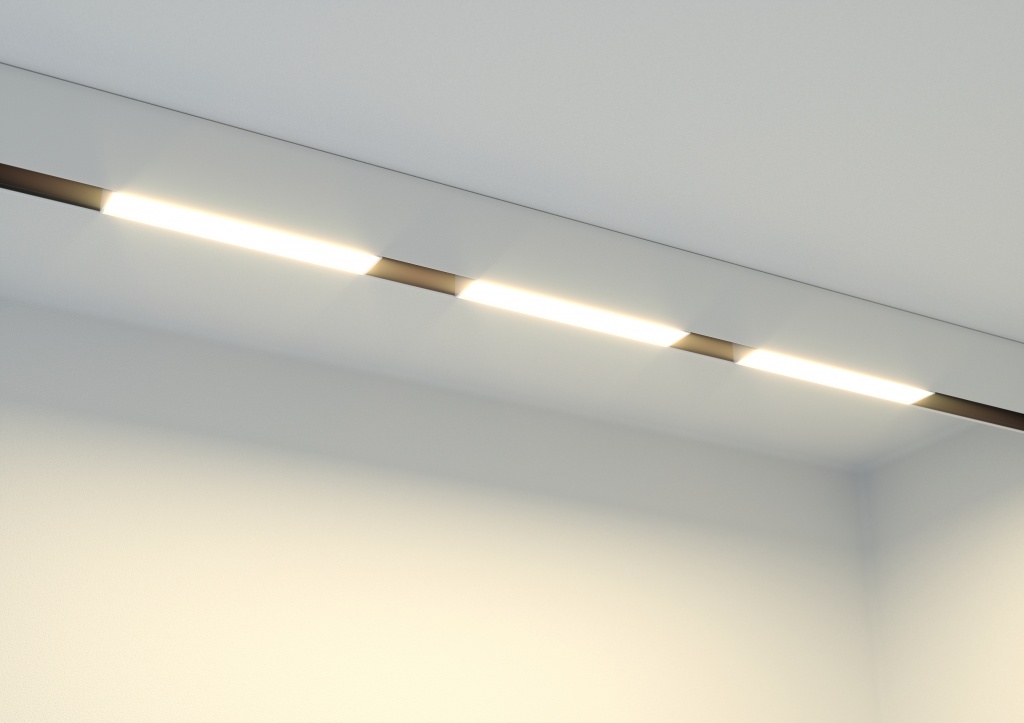 Магнитные трековые светильники крепят на алюминиевые ленты, которые предварительно устанавливают на потолке. Лампы можно перемещать по ленте, а также регулировать их наклон, фокусируя свет на желаемом объекте.