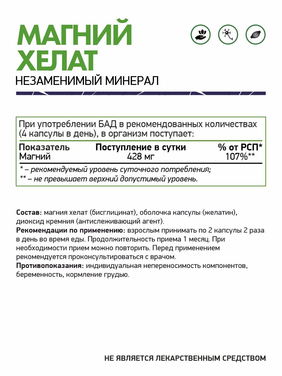 Магний хелат - является универсальным регулятором биохимических и физиологических процессов в организме.