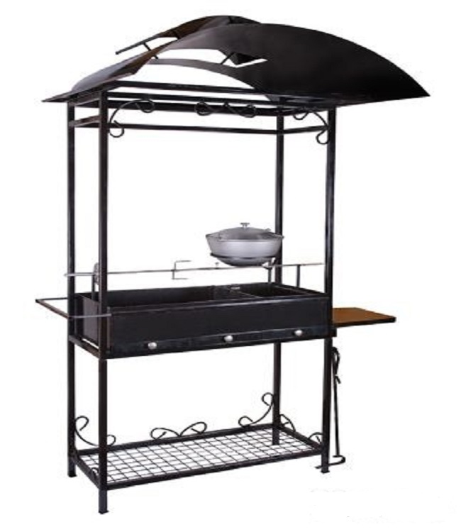 • Стойка под мангал МД-9 с дровницей, с столиком из фанеры, крыша с дымоходом.