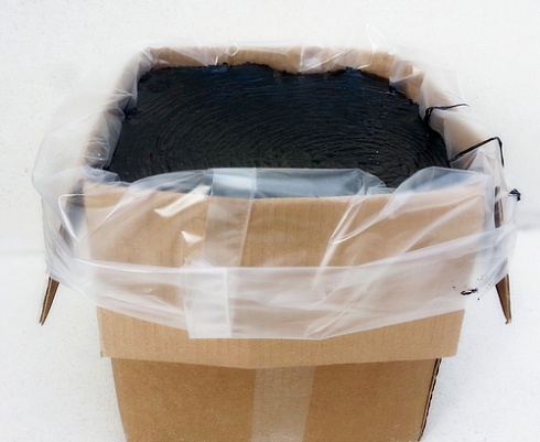 Мастика применяется исключительно в нагретом виде. Перед разогревом необходимо удалить картонную коробку. Пленка, в которую упакована мастика расплавляется вместе с ней. Для разогрева материала задействуется специальная плавильно-заливочная установка. С ее помощью происходит нагрев, перемешивание и подогрев состава. Разогретая мастика сохраняет свои свойства на протяжении 6 часов. Чтобы предотвратить термическую деструкцию материала нужно исключать нагрев до +210° C.