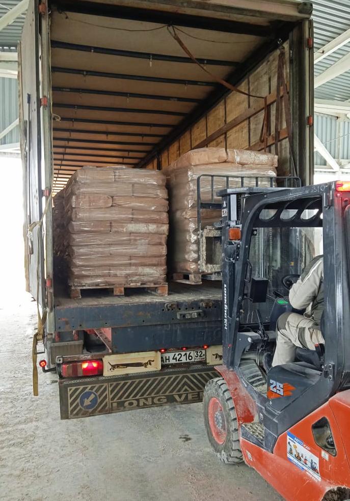 Мел, упакованный в мешки, паллетируется стрейч-пленкой на поддонах 1,0х1,2 м по 36 мешков.