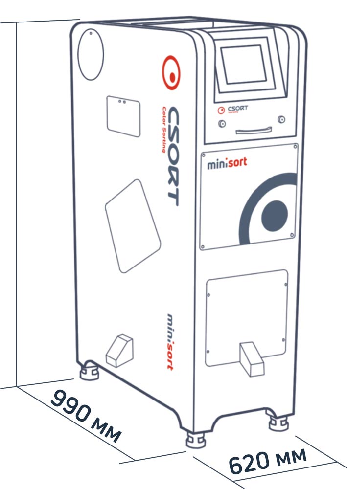 Мини-фотосепаратор MiniSort — однолотковый, компактный фотосепаратор с цветными камерами высокого разрешения – 5400 пикселей. Предназначен для сортировки сыпучих материалов с высокой точностью, производительностью и низкой стоимостью. Для компаний с небольшим объемом сырья показывает хорошую окупаемость.