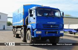 Азотный компрессор ТГА-10/251 с технологией мембранного газоразделения на шасси грузового автомобиля для работы в нефтегазовой отрасли. Давление - 250 кгс/см². Производительность - 10 Нм³/мин. Чистота азота - до 99 %. Длина - 10000 см. Ширина - 2500 см. Высота - 3600 см. Вес - 26500 кг.