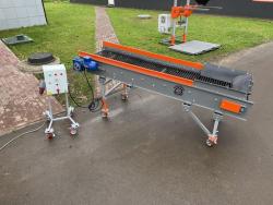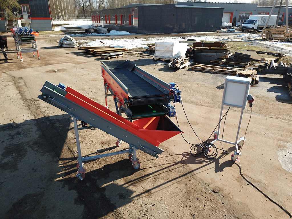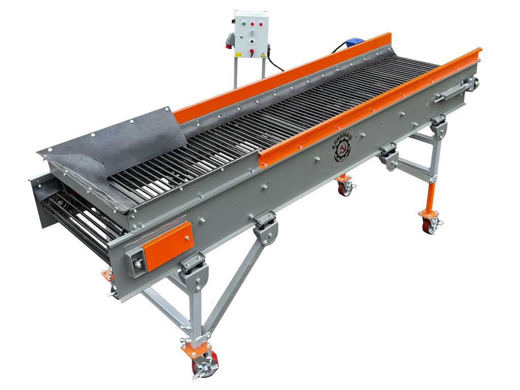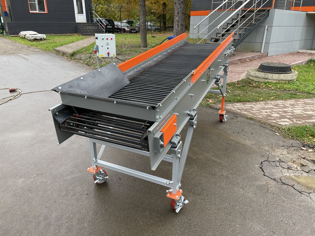 Представляет из себя голландский обрезиненный прутковый транспортер с механизмом встряхивания выполненный на отдельной раме. Может изготавливаться в исполнении с нижним отводящим конвейером по которому будет уходить просеянный мусор. Применяется как дополнительная приставка к приемному сортировочному бункеру, который не оборудован встроенным прутковым встряхивающим транспортером. Предназначен для эффективного отделения мелкой фракции продукта от грязи и мусора.
