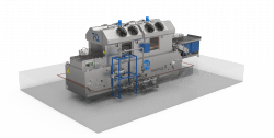 Моечная машина предназначена для мойки горячим моющим раствором с последующим ополаскиванием горячей чистой водой и последующей обдувкой в автоматическом (полуавтоматическом) режиме корпусов букс, крышек, лабиринтных, дистанционных колец