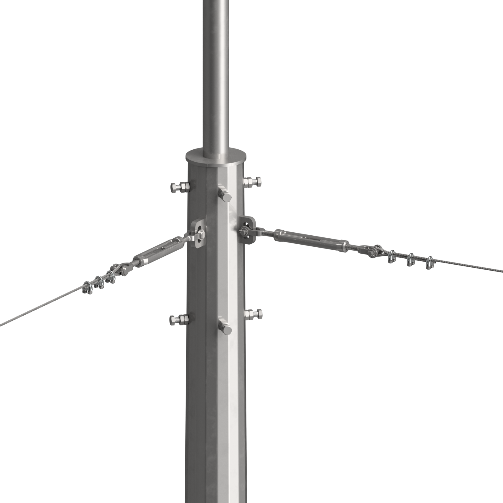 — Использование тросовых растяжек для создания контура молниезащиты.