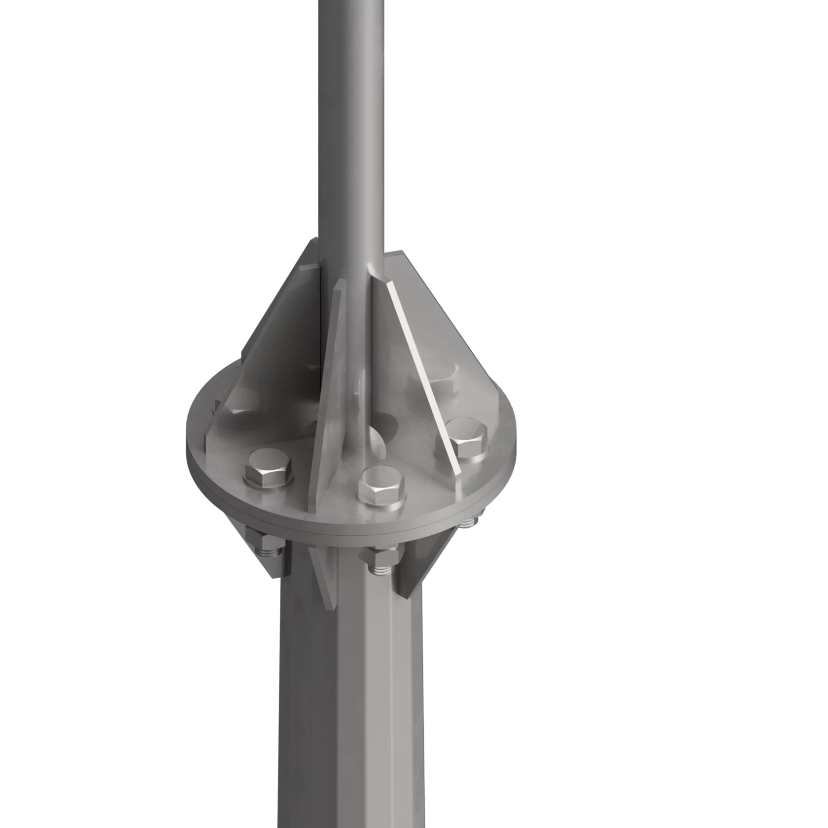 — Конструкция молниеотвода изготавливается из листового проката, толщина металла и конструктив зависит от высоты, диаметра ствола, и места установки. Марка стали подбирается в зависимости от региона эксплуатации. Форма ствола – граненая коническая.