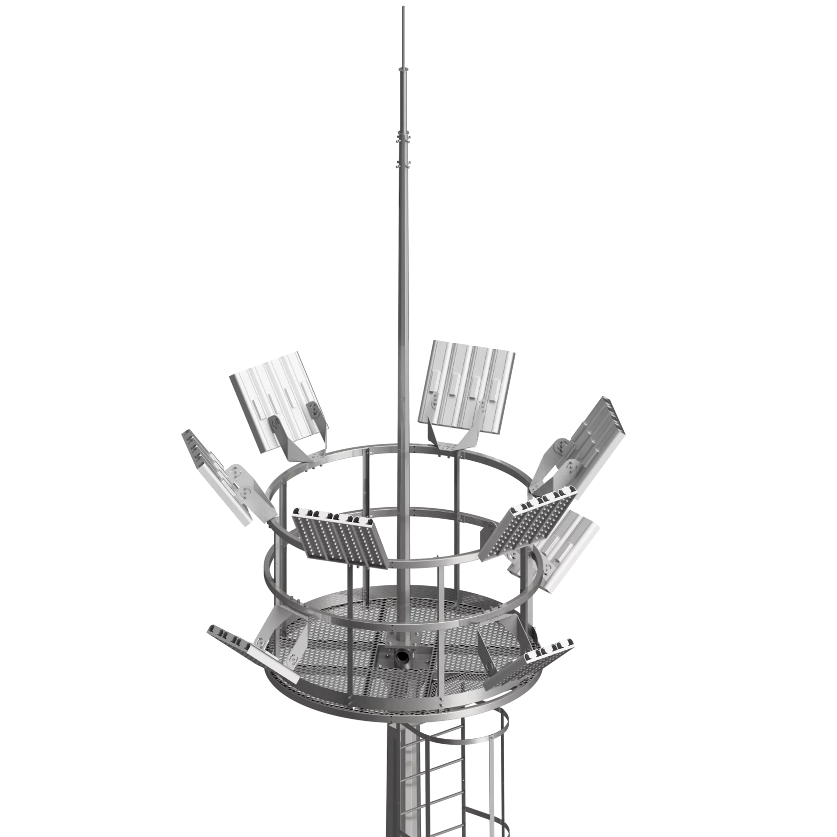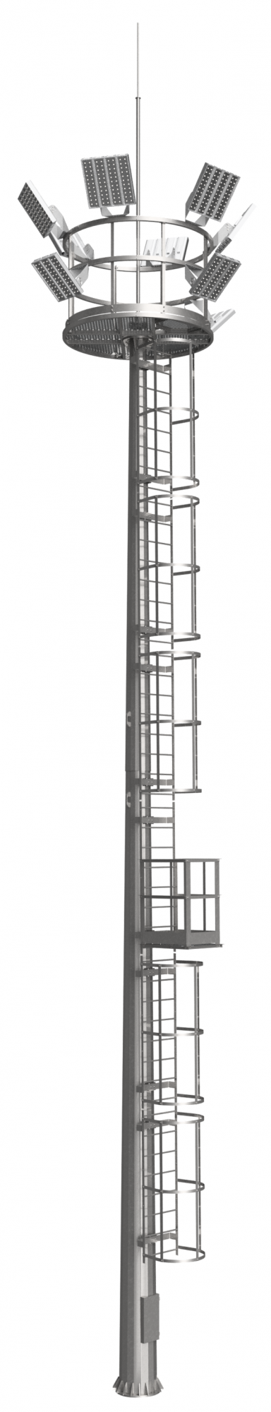 — Присутствует площадка обслуживания прожекторов различной конфигурации высоты установки.