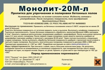 Пропитка «Монолит-20М-Л» изготовлена на основе силиката лития, глубоко (на 30-40 мм) проникает в бетон. В ходе физико-химической реакции, в порах бетона образуются керамические структуры (нерастворимый гидроксид кальция). Бетонная поверхность становится стойкой к воздействию воды, моторных масел и других химических веществ, а так же становится стойкой к абразивным нагрузкам, предотвращается пыление. Бетон легко полируется. Процесс обслуживания пола, обработанного пропиткой «Монолит-20М-Л» значительно упрощается. Можно использовать «Монолит-20М-Л» для упрочнения и обеспыливания низкокачественных пористых бетонных полов.