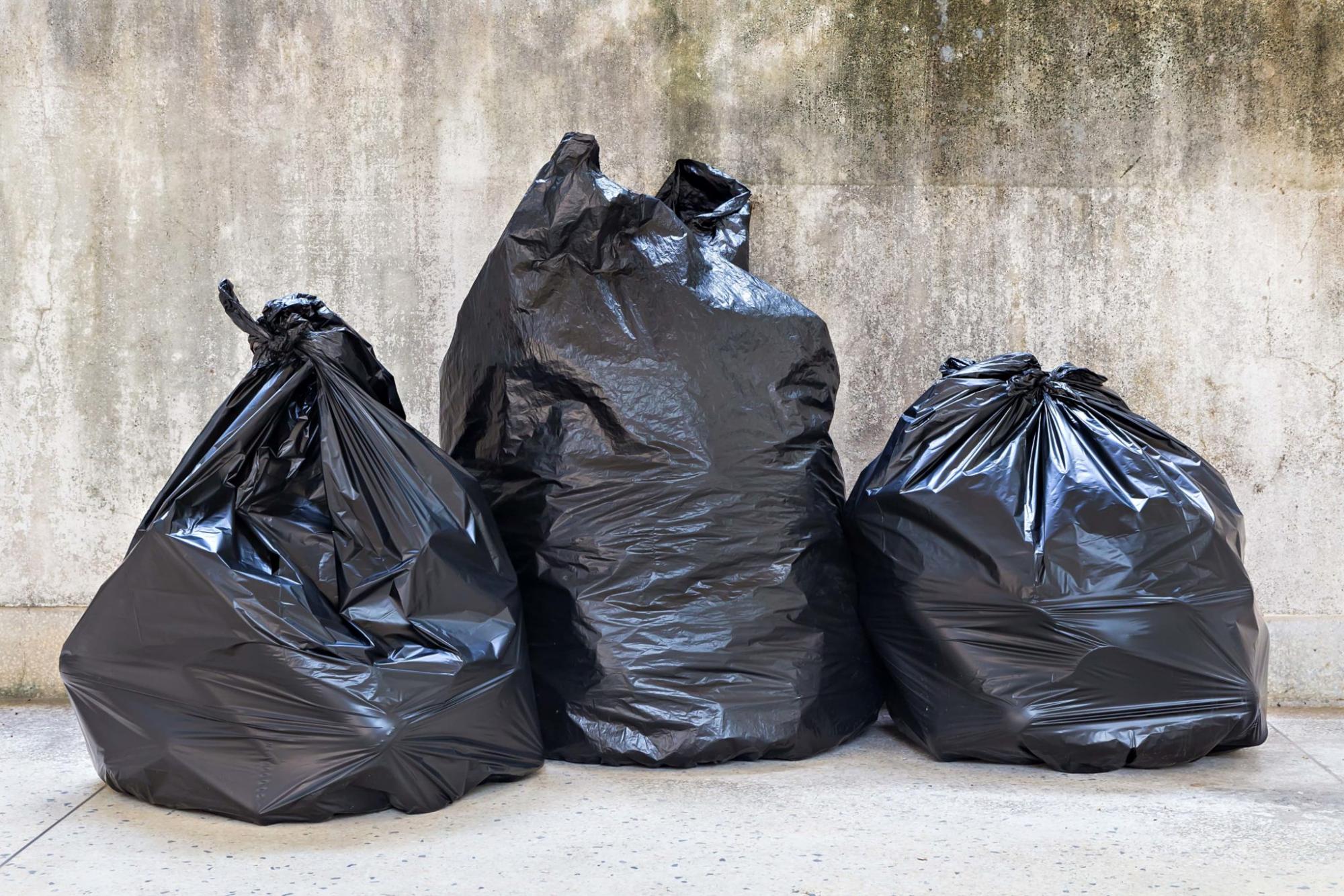 Черные мусорные пакеты. Благодаря плотному черному закрашиванию содержимое...