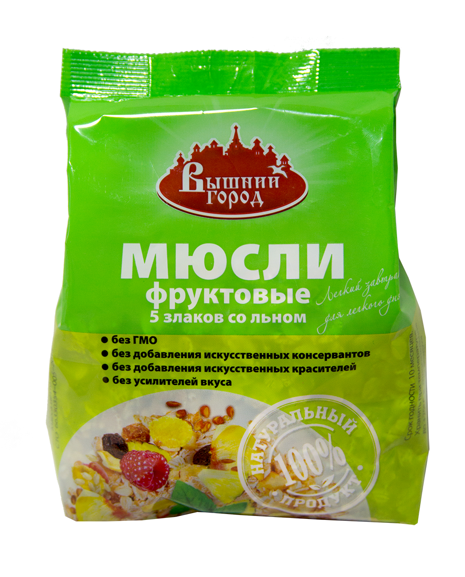 Хлопья овсяные, ржаные, пшеничные, ячменные, кукурузные, изюм, ананас, семена льна/подсолнечника, арахис, персик