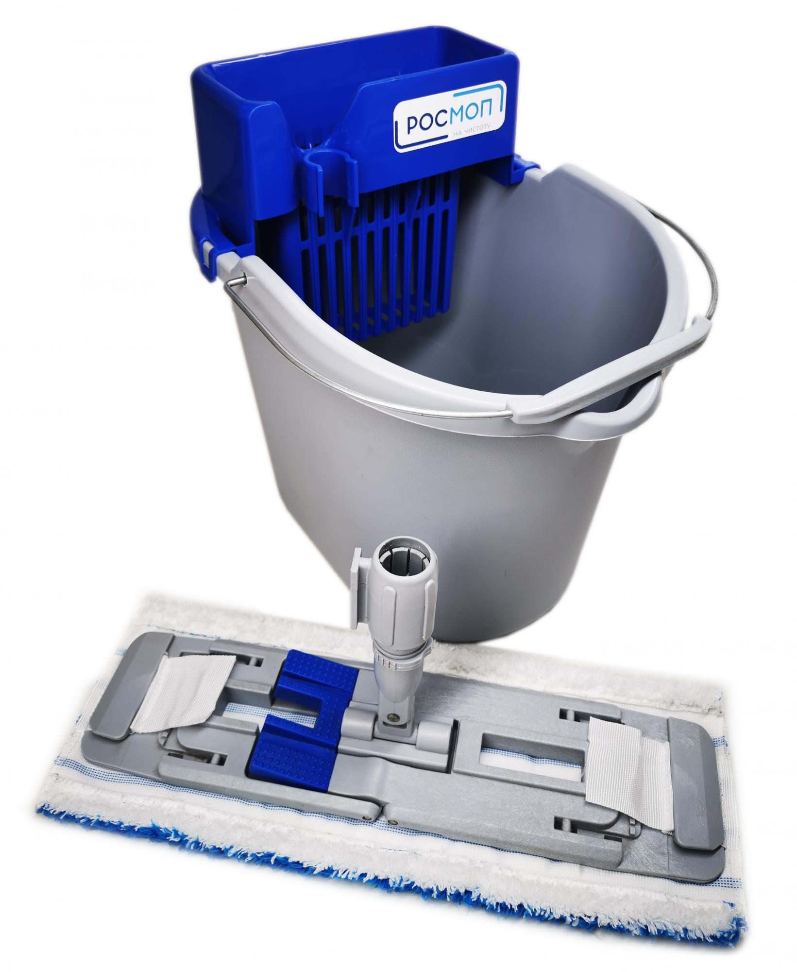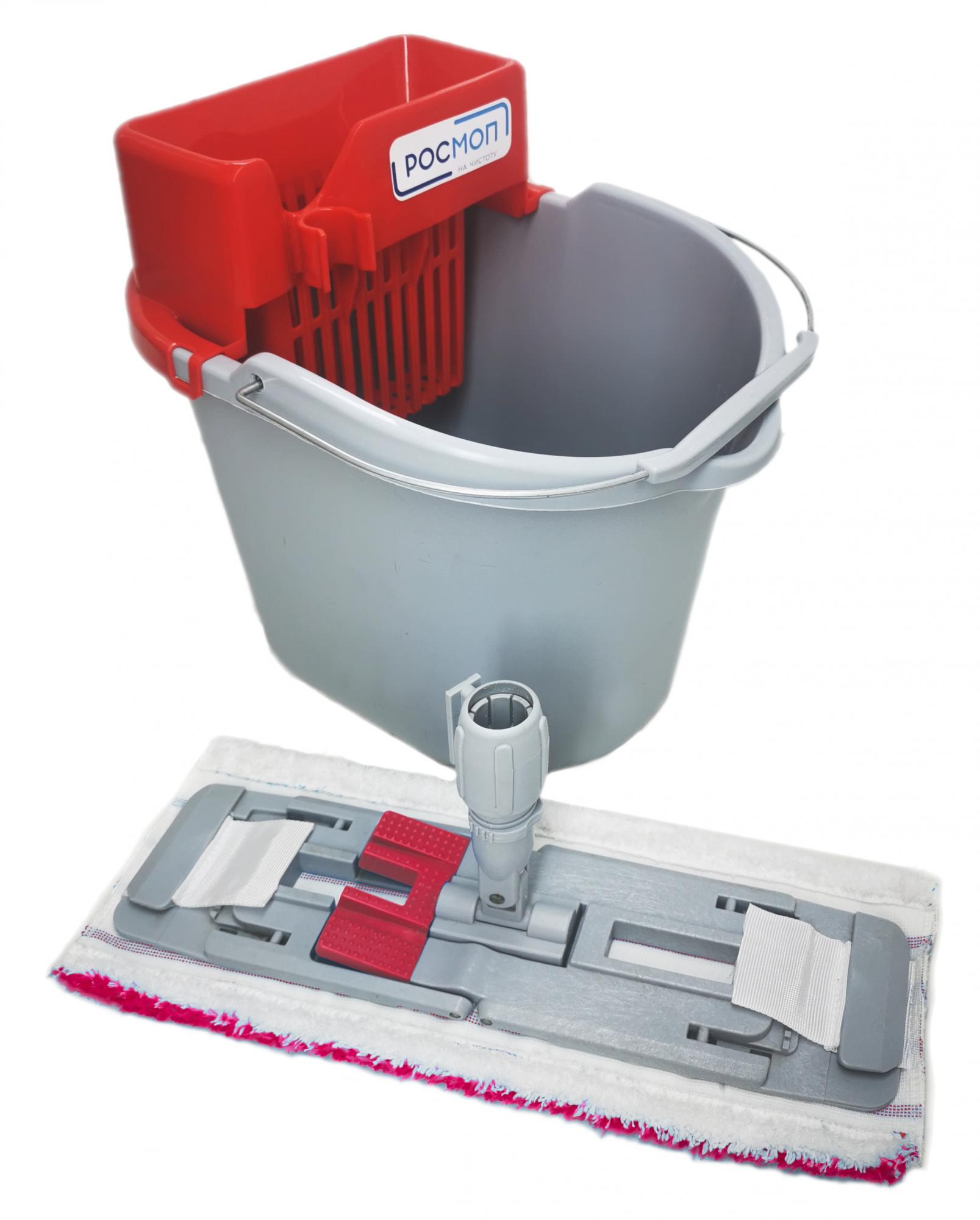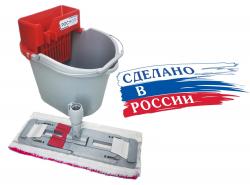 Комплект для уборки не больших помещений ( до 100 кв.м.) состоит из ведра 10л, бесконтактного отжима и швабры с насадкой. Рукоятка не входит в комплект и докупается отдельно. В зависимости от выбранной рукоятки мы коплектуем двумя видами держателей под "итальянскую" резьбу (бытовой вариант использования) или цанговую гайку на профессиональную рукоятку 22-24 мм.