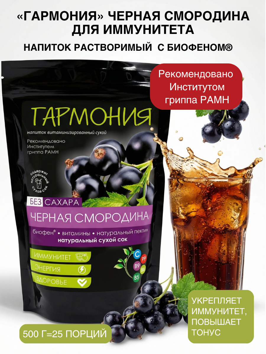 Витаминизированный сухой напиток «Гармония» с Биофеном® рекомендован Институтом гриппа РАМН для поддержки иммунитета и общего укрепления организма. Это концентрированная смесь, из которой всего за несколько секунд можно приготовить полезнейший и вкусный напиток. Концентрат для сухого напитка содержит мощный антиоксидант Биофен®, витамины, пектины, натуральный сухой сок малины. Растворимый напиток «Гармония» с Биофеном® полезно иметь всегда под рукой, особенно в период межсезонья и простуд. Он поддержит иммунитет, ускорит выздоровление и быстро восстановит силы после болезни. Полезный растворимый напиток позволит оставаться в тонусе на работе, восстановит вас после напряженного рабочего дня, вернет состояние гармонии и умиротворения.