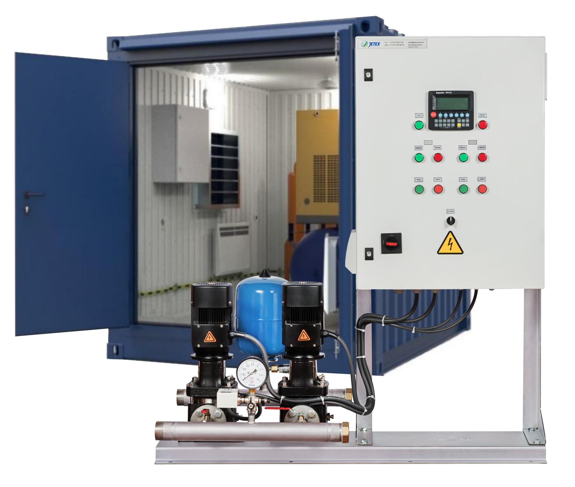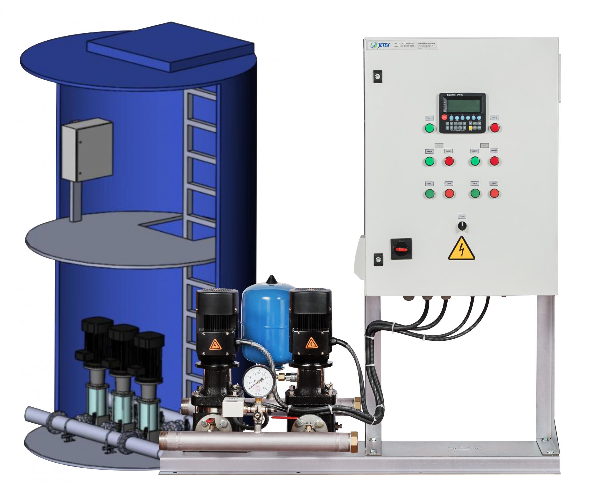 Насосные станции повышения давления JETEX V собственного производства. Доступные цены. Высокий КПД. Различная комплектация 1-6 насосов, со шкафом управления, с жокей-насосом. Частотное регулирование. Исполнение наземное, подземное, в блок боксе - под Ваше ТЗ.