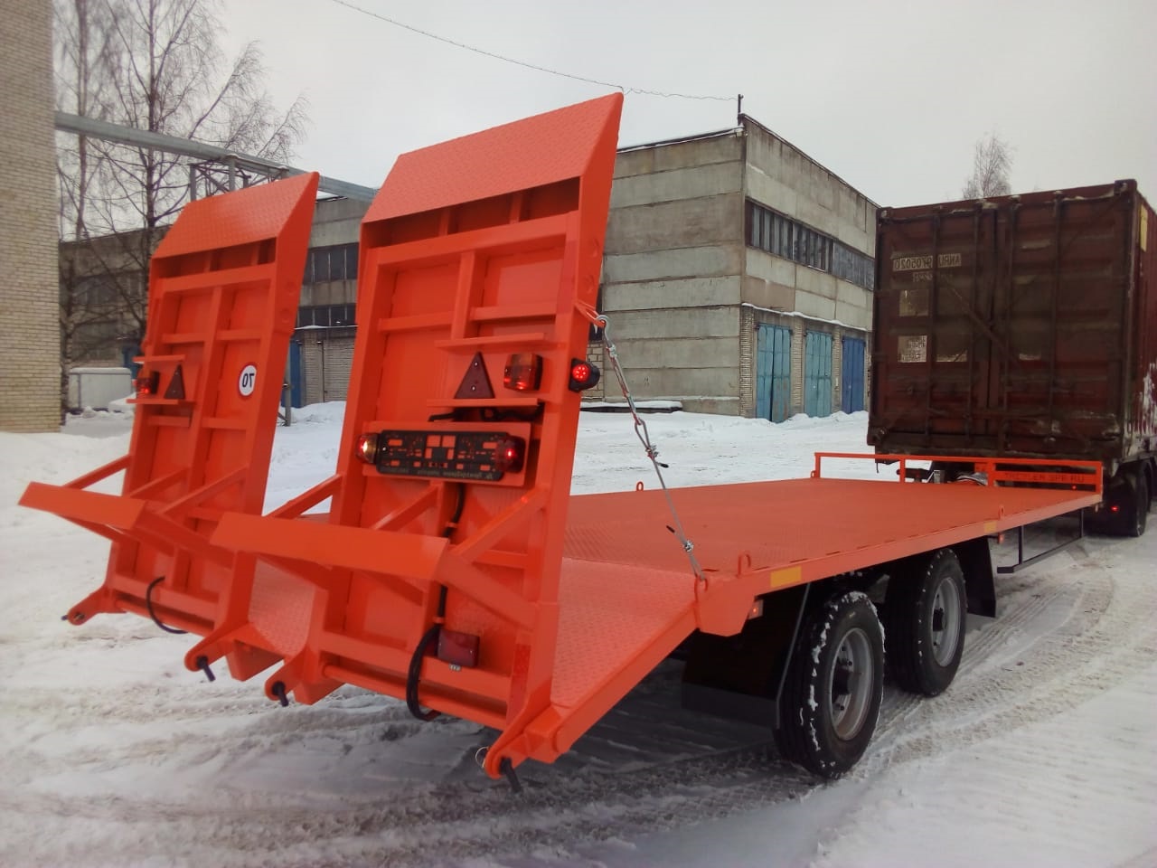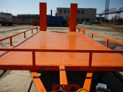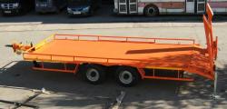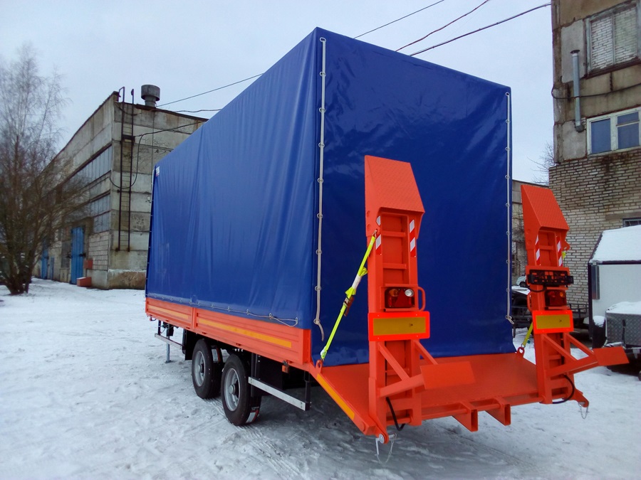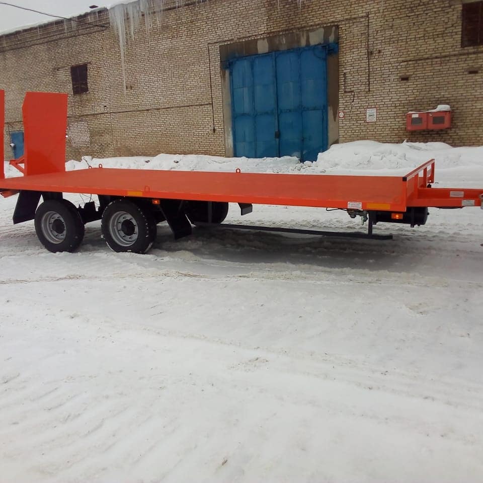 Прицеп цельносварная металлическая рама, выполнен в виде платформы, оборудованной тягово-сцепным устройством, откидными трапами (аппарелями) с возможностью регулировки по ширине, для уменьшения угла въезда грузовая платформа выполнена с задним скосом. Подвеска прицепа оборудуется двумя осями и системой рессорной параболической подвески. Тормозная система пневматическая с АБС.Оси GRANNING Ирландия.
