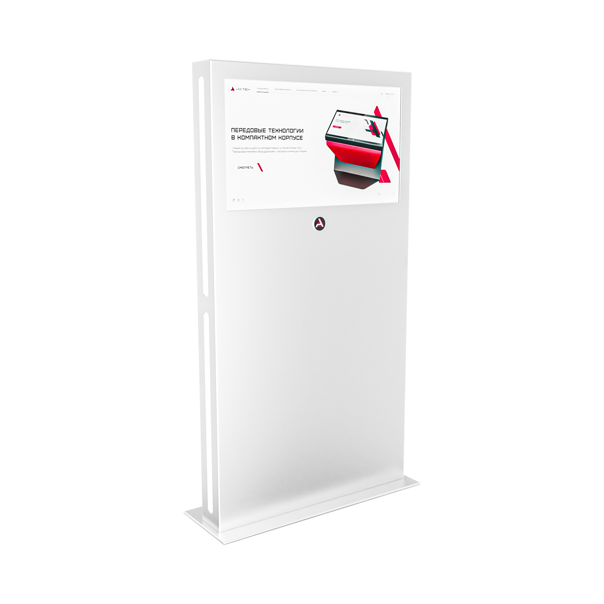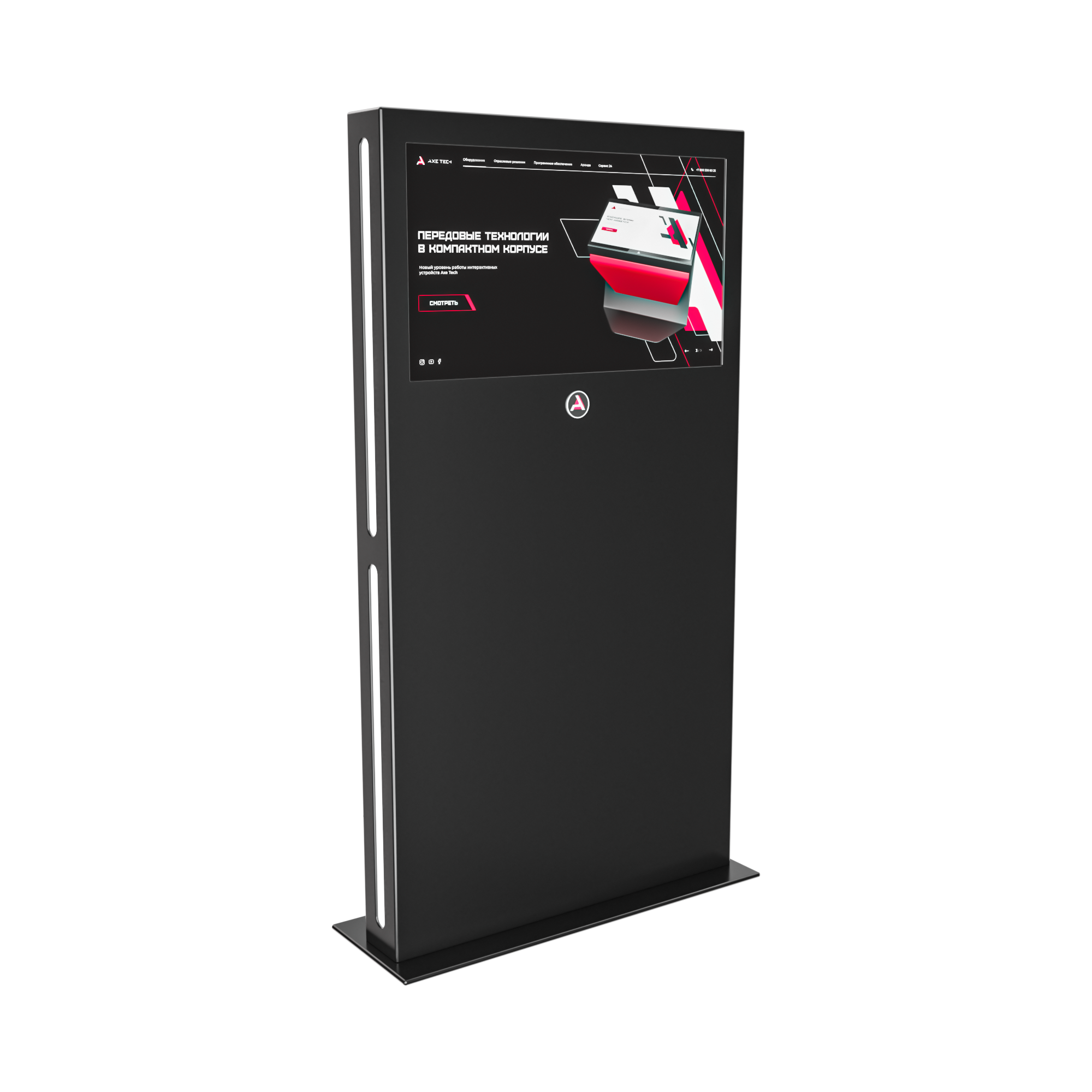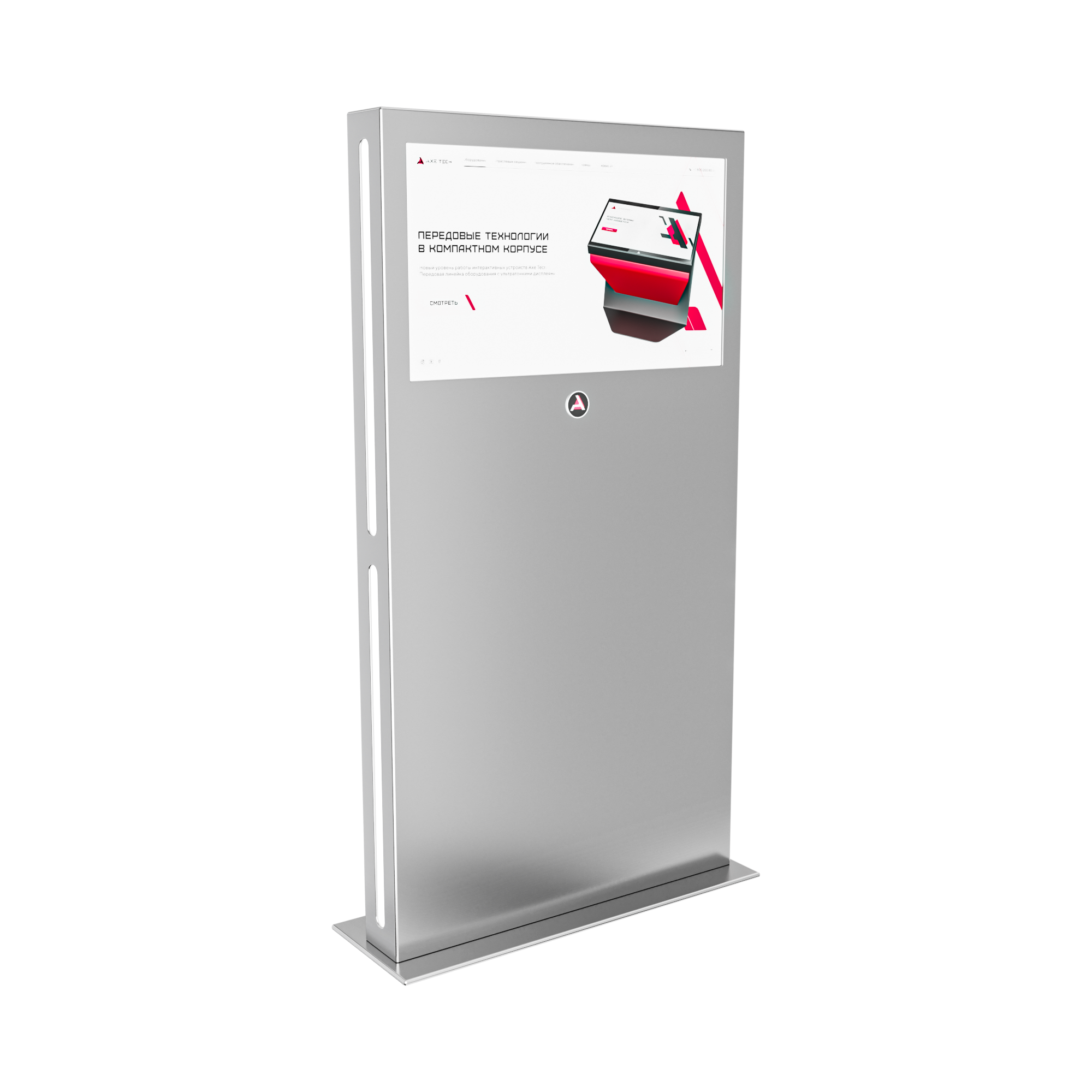 Тонкий стальной корпус и минималистичный дизайн подойдут к любому интерьеру, а светодиодная боковая подсветка позволит увидеть все загруженные на интерактивный киоск материалы даже в самом темном помещении.