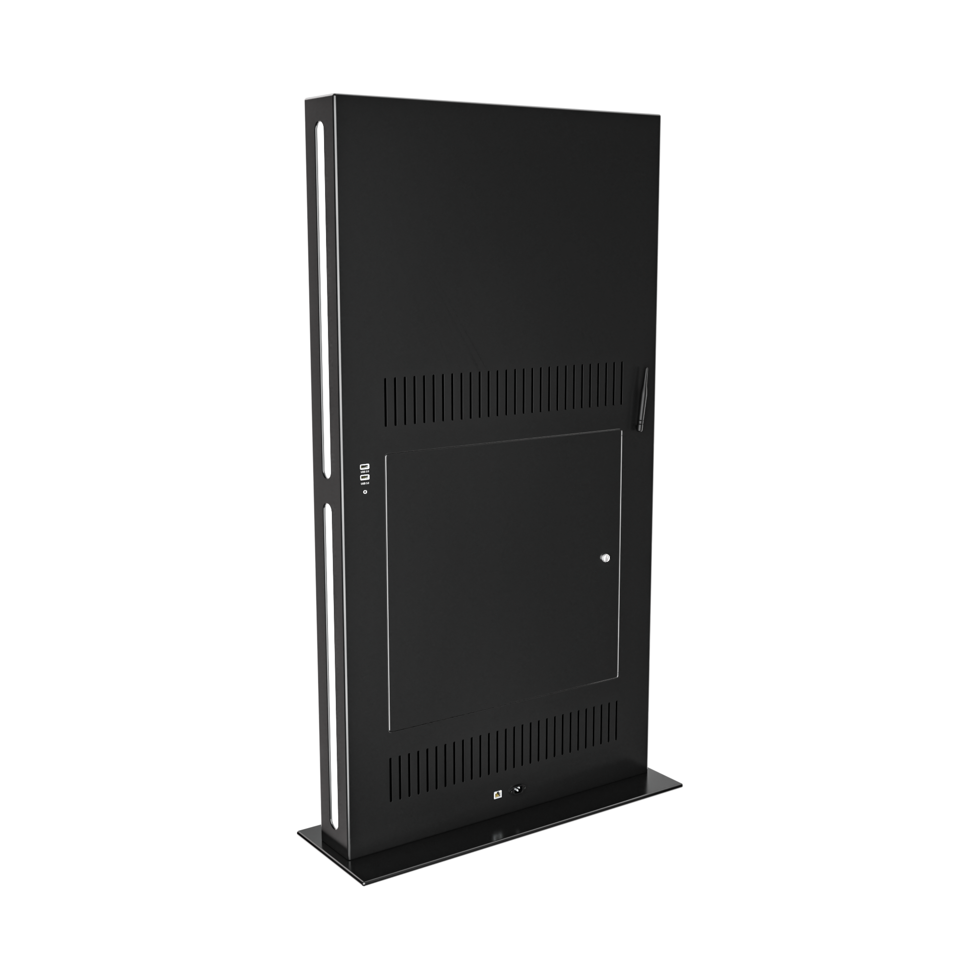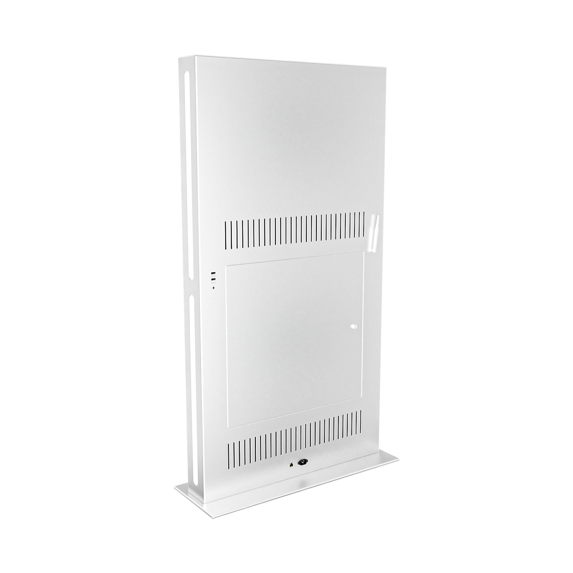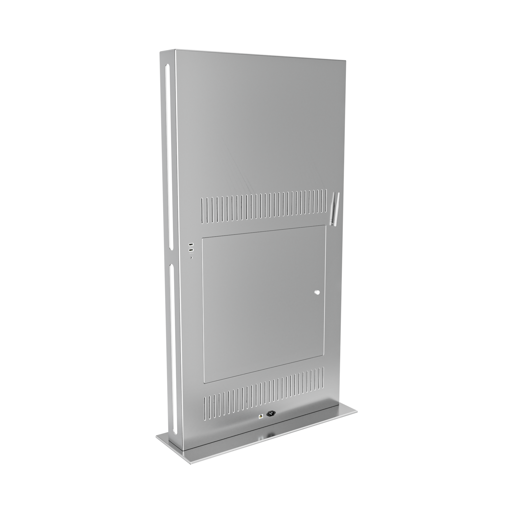 Тонкий стальной корпус и минималистичный дизайн подойдут к любому интерьеру, а светодиодная боковая подсветка позволит увидеть все загруженные на интерактивный киоск материалы даже в самом темном помещении.