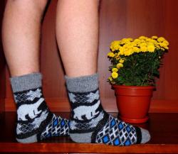 К оптовому заказу доступны мужские шерстяные носки с узором "медведь" в коричневой расцветке. Наши носки из овечьей шерсти не только теплые и уютные на вид благодаря модной в этом сезоне расцветке, но и по настоящему тёплые и комфортны ноге, так как выполнены из натуральной овечьей шерсти. Благодаря натуральному составу носки имеют антибактериальные свойства и не являются колючими, что располагает к носке на босу ногу - тренд этого сезона у модников. Эластичные, принимают анатомическую форму ноги. После стирки носки принимают изначальную форму