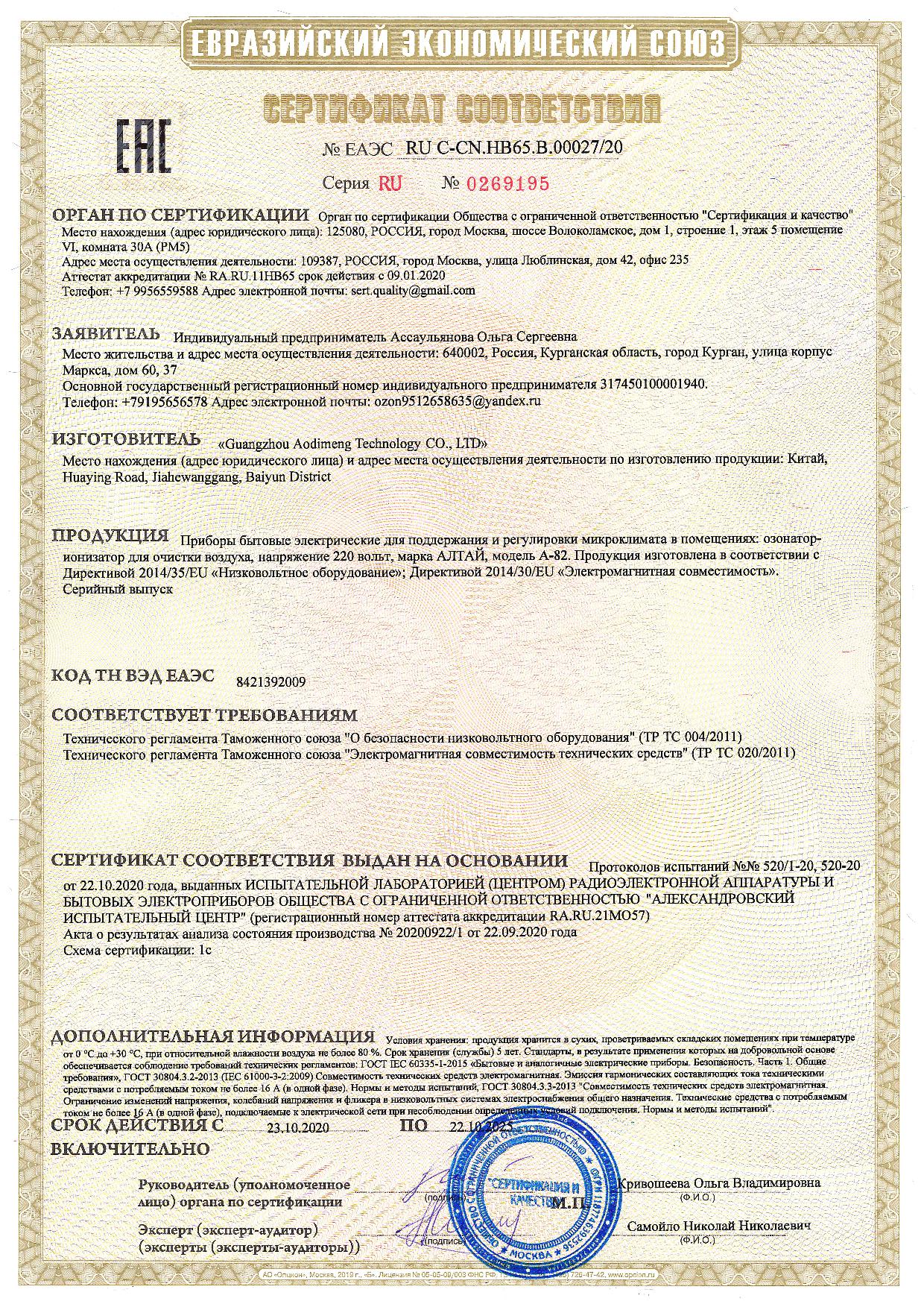 В КОМПЛЕКТЕ С ОЗОНАТОРОМ АЛТАЙ: 2 силиконовых шланга, 3 насадки распылителя, ударопрочная упаковка, иллюстрированная инструкция.