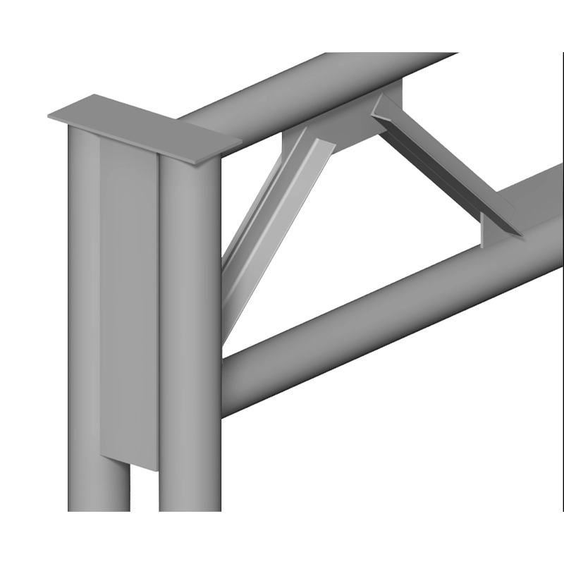 Опоры дорожные рамные П-образные РМП представляют собой металлические конструкции для размещения информационных щитов и дорожных знаков над проезжей частью. Конструкции изготавливаются из стальных труб диаметром от 108 до 325 миллиметров с толщиной стенки 4-8 миллиметров. Опоры производятся высотой от 5,9 до 6,6 метра с пролетом между стойками от 15 до 28 метров. Все изделия соответствуют требованиям ГОСТ Р 52289-2004 и рассчитываются на ветровую нагрузку до 0,8 кПа согласно СП 20.13330.2016.