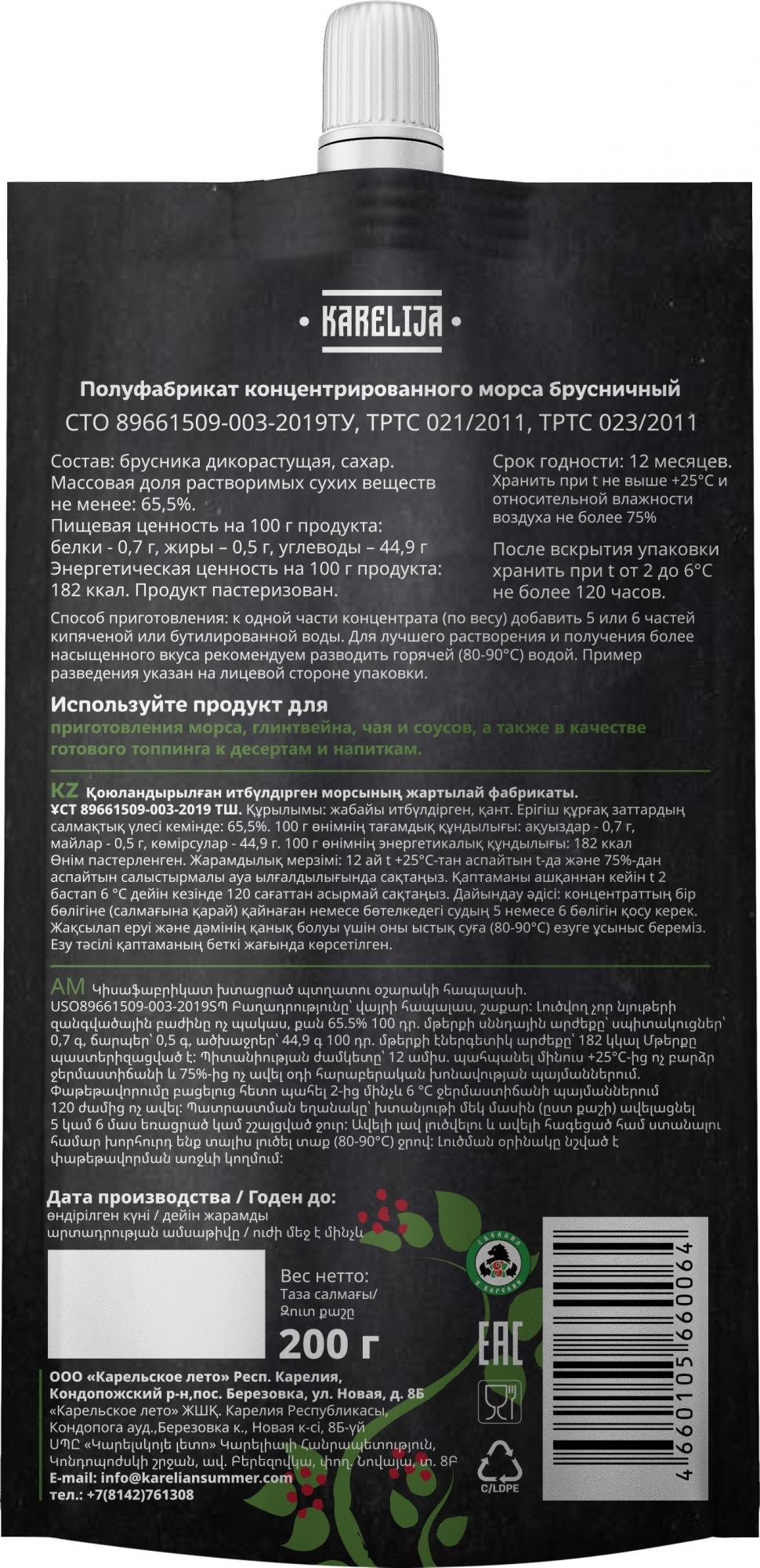 Состав: дикорастущие ягоды карельской...