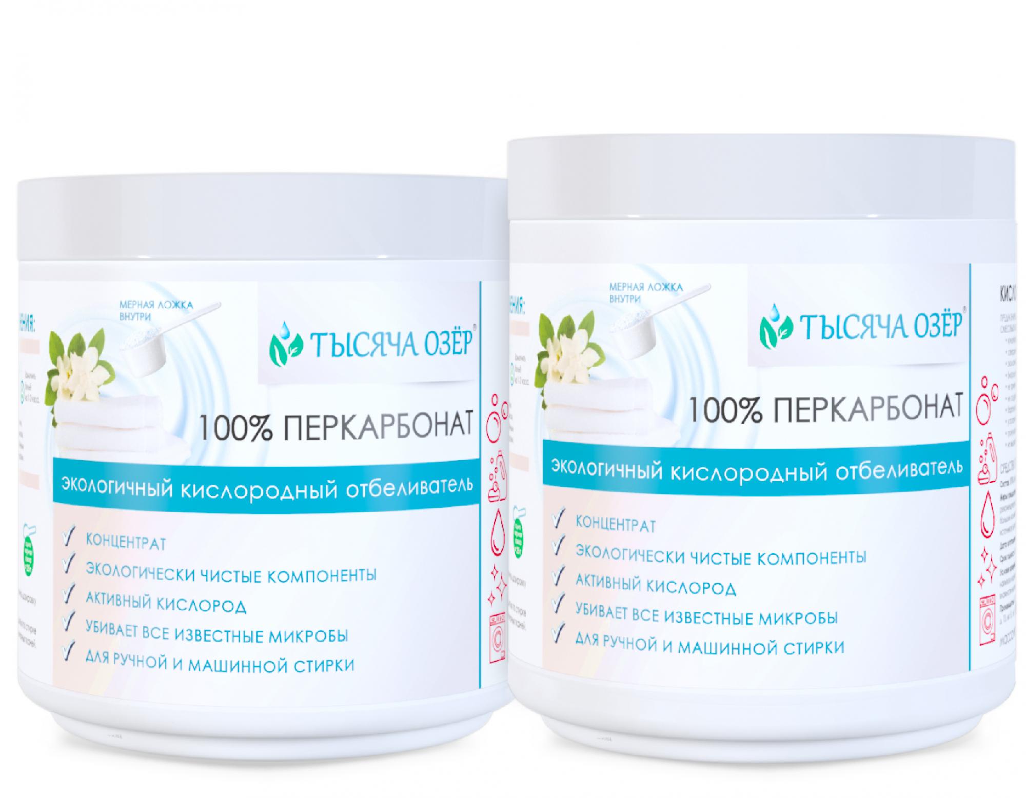 Новый экологичный кислородный отбеливатель «Перкарбонат 100%» бренда ТЫСЯЧА ОЗЁР превосходно осветляет белые вещи, удаляет стойкие, застарелые пятна с белых и цветных тканей, удаляет запахи, не вызывает выцветания, усадки или растяжения волокон. Предназначен для отбеливания хлопчатобумажных, льняных, смесовых и синтетических тканей. Средство изготовлено из перкарбоната натрия в самой высокой концентрации. Полностью смывается с ткани, подойдет для замачивания и стирки детских вещей и для усиления стирального порошка. В составе нет хлора, фосфатов, отдушек, консервантов, красителей и балласта. Экологически чистые компоненты безопасны для здоровья человека, канализации, септиков и окружающей природы. Подходит для стиральных машин всех типов и ручной стирки.