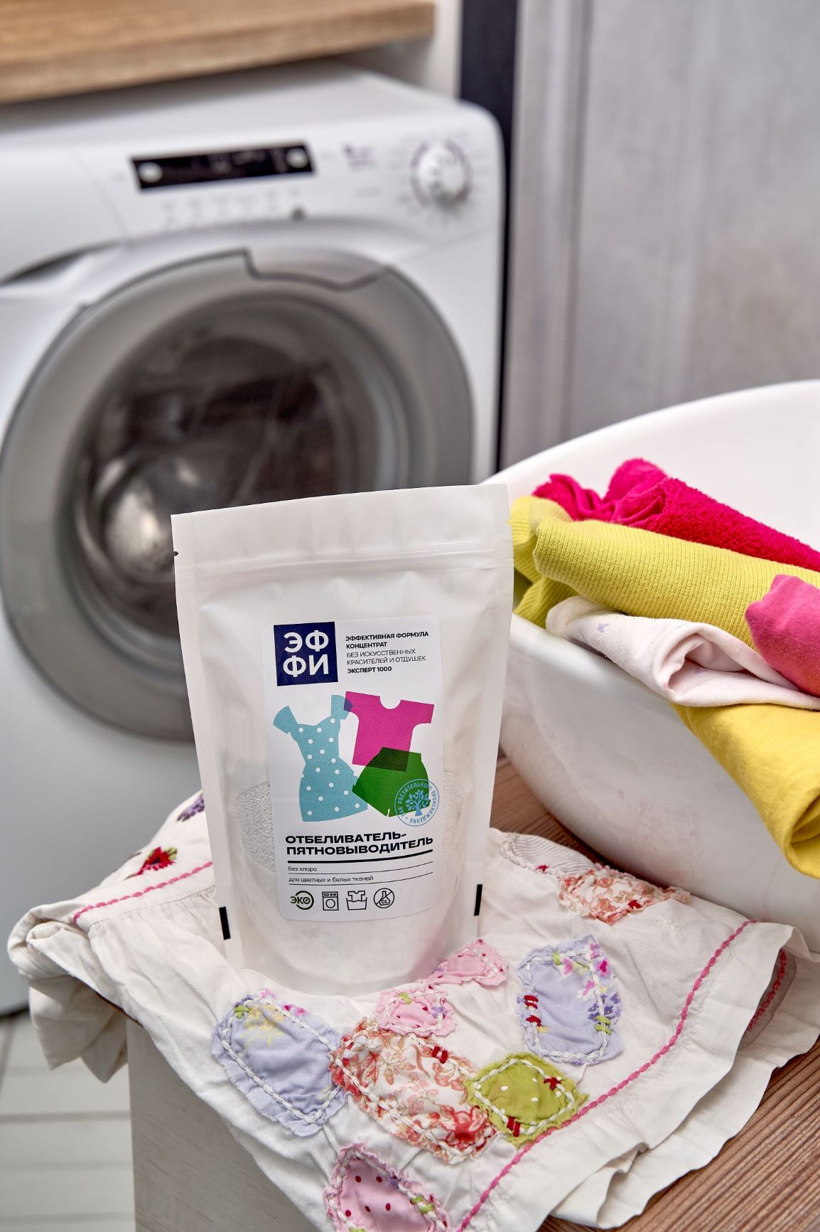 • Устранение пятен: обильно смочите пятно горячей водой, смешайте средство с небольшим количеством воды до образования пасты, равномерно нанесите на пятно и оставьте на 30-60 минут, затем сполосните и стирайте изделие в обычном режиме.