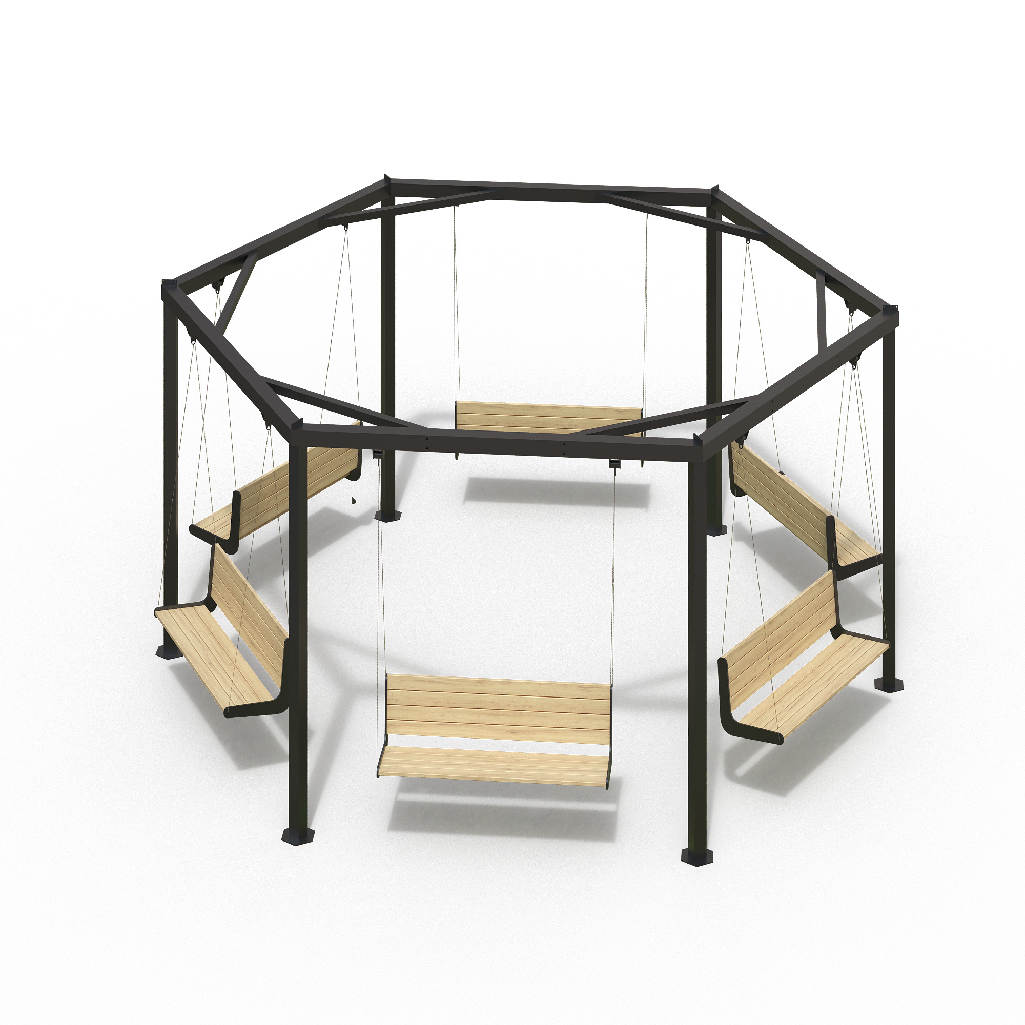 - Надёжность и долговечность. Металлический каркас, окрашенный порошковой краской с грунтовкой, обеспечивает прочность и долговечность конструкции. Вы можете выбрать цвет краски по таблице RAL, чтобы гармонично вписать качели в окружающую среду.
