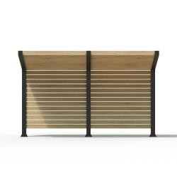 Уличный навес GF3 выполнен на металлическом каркасе с элементами из натурального дерева (сосны или лиственницы). Навес станет не только практичным, но и эстетически привлекательным дополнением к любому уличному пространству.