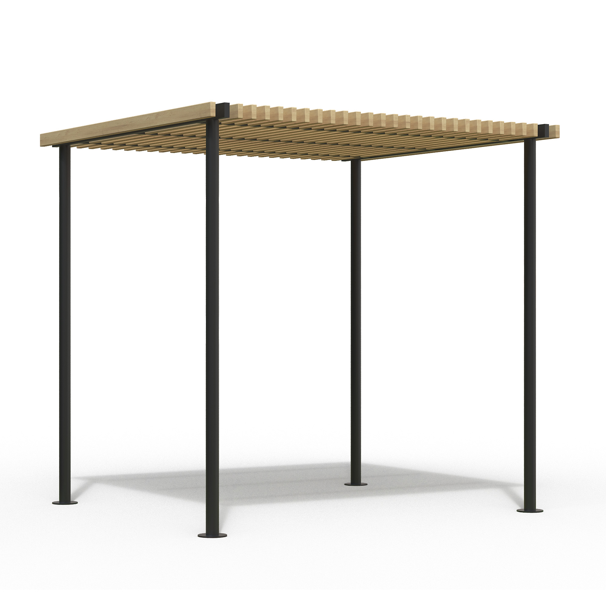 Уличный навес GF7 выполнен на металлическом каркасе с элементами из натурального дерева (сосны или лиственницы). Навес станет не только практичным, но и эстетически привлекательным дополнением к любому уличному пространству.