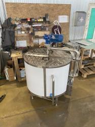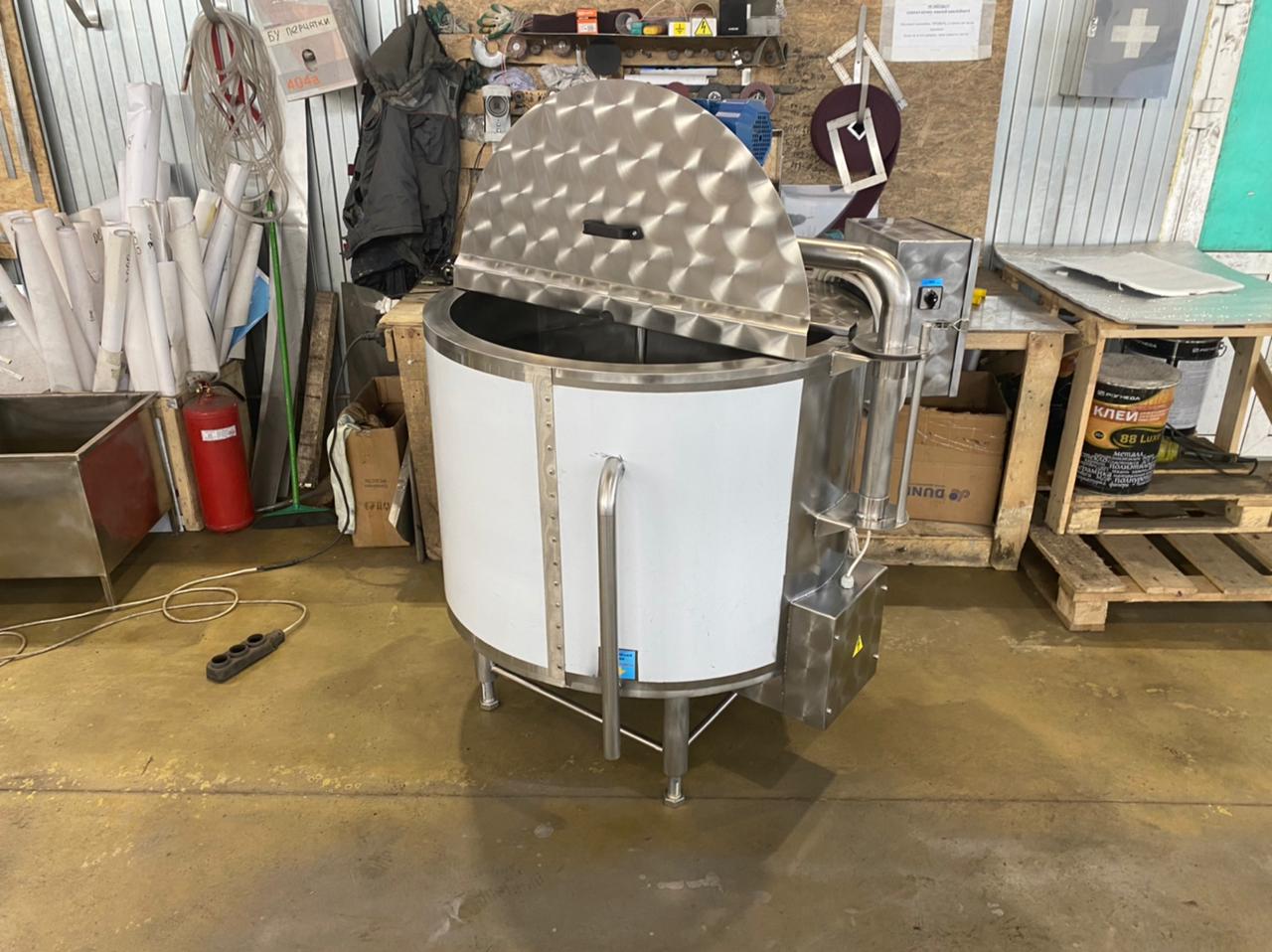 Ванна заполняется продуктом, а водяная рубашка (межстенное пространство) между корпусом и ванной заполняется водой через вентиль шаровой 3/4″ до уровня переливной трубы. Для ускорения теплообмена включается миксер.