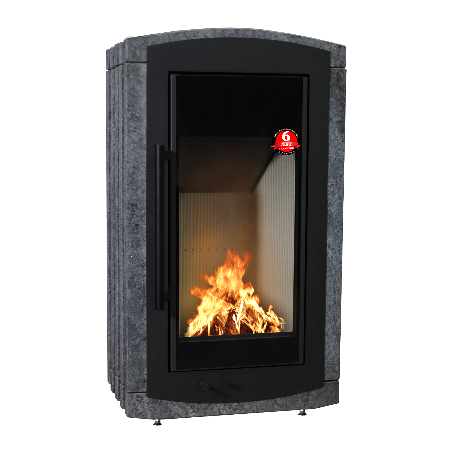 В печь-камине ROYAL STONE подового горения, воздух подается на верхний слой топлива уже горячим, что позволяет лучше и эффективней сжигать топливо, а так же добиться эффекта красивого «верхнего» горения. Наличие футеровки топки печь-камина подового горения позволяет добиться более высокой температуры в топочной камере, а значит более эффективного сгорания топлива и лучшей теплоотдачи.