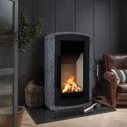 За счёт внешней облицовки из натурального камня, печь-камин обладает высокими показателями накопления тепла и его последующей длительной передаче дому.