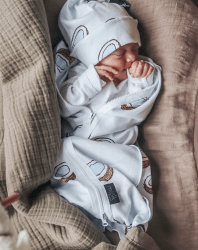Комплект {пелёнка-кокон и шапочка с узелком} подарит малышу спокойный сон с самого рождения. Двухзамковая молния поможет легко сменить подгузник. Мягкий гипоаллергенный материал кокона окутывает малыша, помогает снизить рефлекс внезапного вздрагивания и создаёт знакомые ощущения «как в животике у мамы».