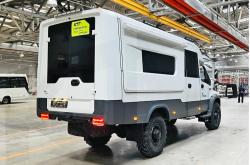 Шасси Садко Next с двухрядной кабиной Стеклопластиковый утепленный фургон на металлическом каркасе с возможностью прохода из второго ряда кабины в фургон Приборная стойка с виброгасителями Перегородка салона, разделяющие его на лабораторный и вспомогательный отсеки Дополнительная подножка и поручень при входе в боковую дверь Пол из тепло-шумоизоляционных материалов, покрытие пола в лабораторном отсеке: транспортный линолеум Отделка лабораторного отсека (стены, потолок) утеплителем, шумоизоляционным материалом и композитным материалом Отделка вспомогательного отсека (стены, пол) рифленым алюминиевым листом Светодиодные светильники в лабораторном отсеке Остекление лабораторного отсека (2 окна) Рабочее место оператора: сиденье оператора, стол Автосигнализация Цветографическая надпись «Экологический пост» Комплект принадлежностей и ЗИП для а/м, включая огнетушители в кабину водителя и лабораторный отсек, аптечку скорой помощи, знак аварийной остановки, домкрат, противооткатные упоры Мачта телескопическая